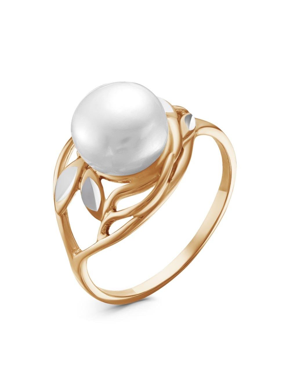 Кольцо серебро 925 пробы, покрытие - золочение, отделка - алмазная грань, вставка - культивированный жемчуг