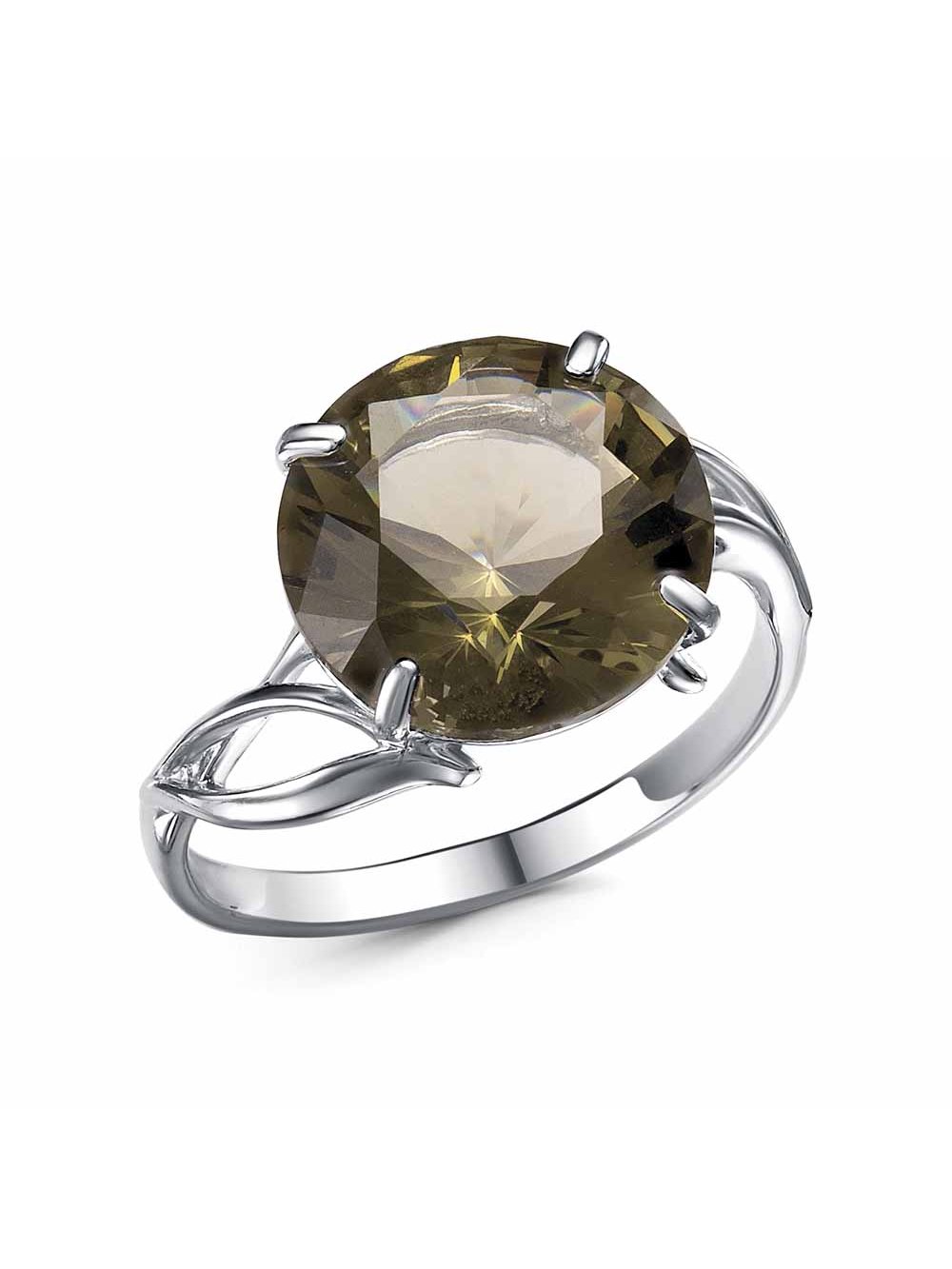 Кольцо серебро 925 пробы, покрытие - родирование, вставка - искусственный раухтопаз