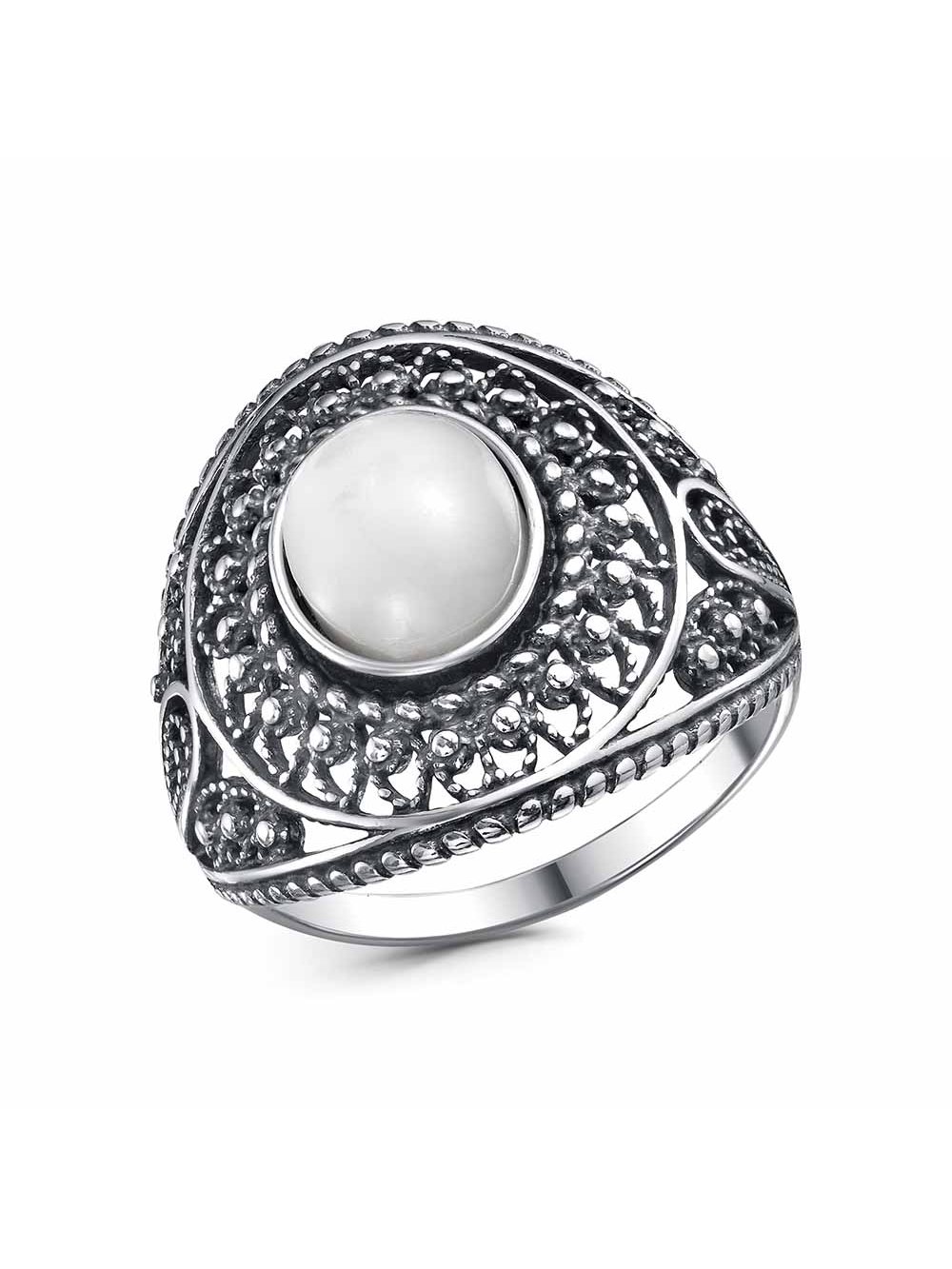 Кольцо серебро 925 пробы, покрытие - оксидирование, вставка - перламутр