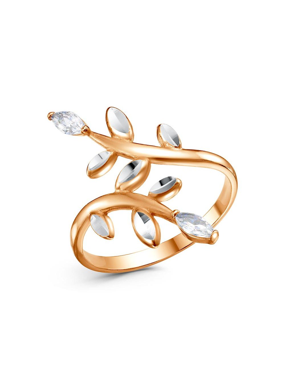 Кольцо серебро 925 пробы, покрытие - золочение, отделка - алмазная грань, вставка - фианит (недрагоценный камень)