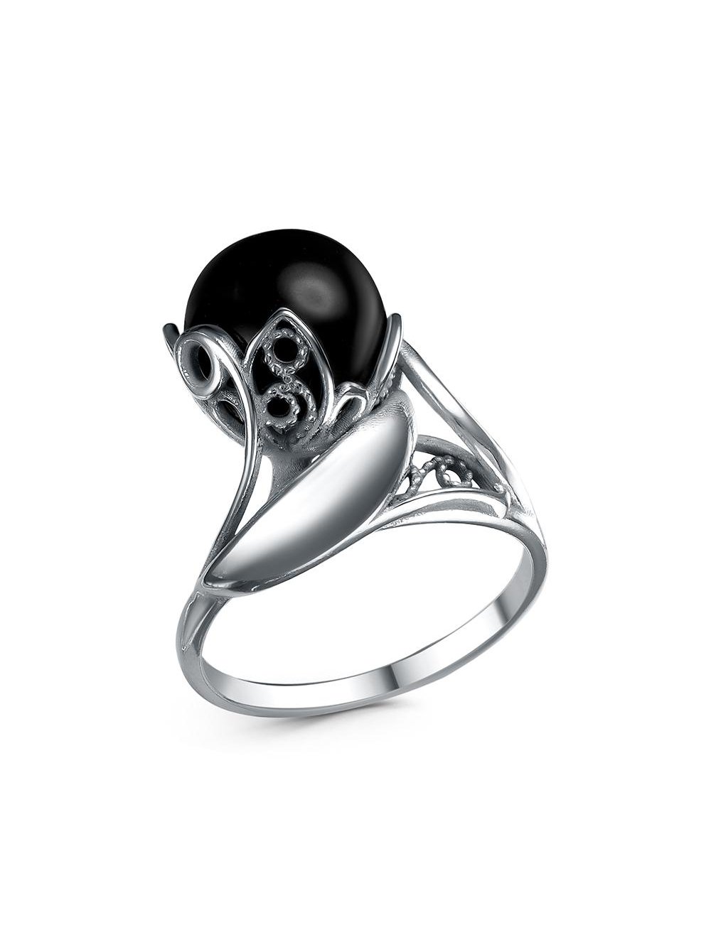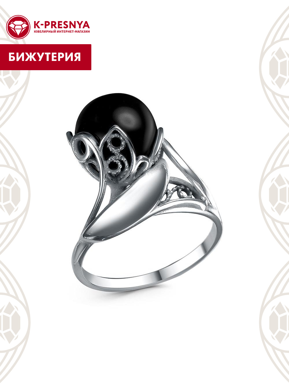 Кольцо бижутерия, покрытие - серебрение с оксидированием, вставка - имитация жемчуга