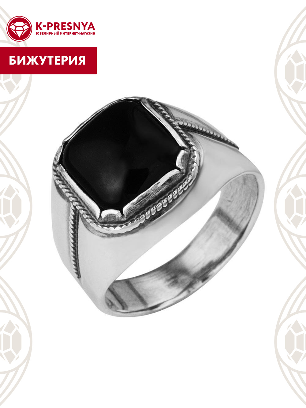 Кольцо бижутерия, покрытие - серебрение с оксидированием, вставка - стекло ювелирное собственной огранки