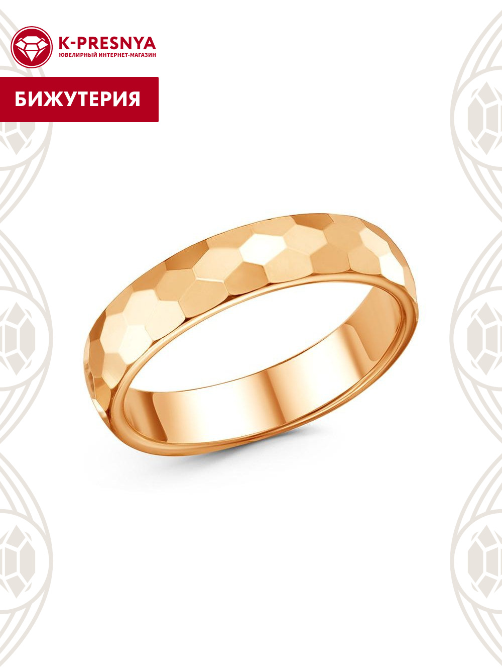 Кольцо бижутерия, покрытие - золочение, без вставок