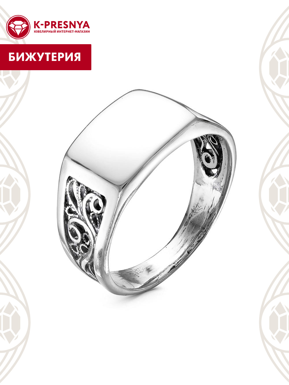 Кольцо бижутерия, покрытие - серебрение с оксидированием, без вставок