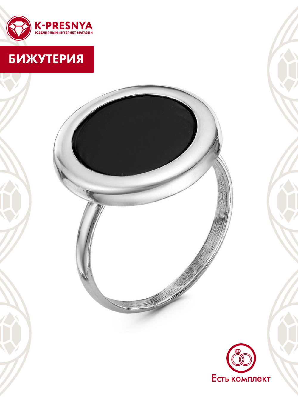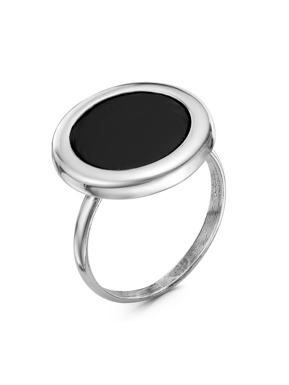 Кольцо бижутерия, покрытие - серебрение с оксидированием, вставка - искусственный агат черный