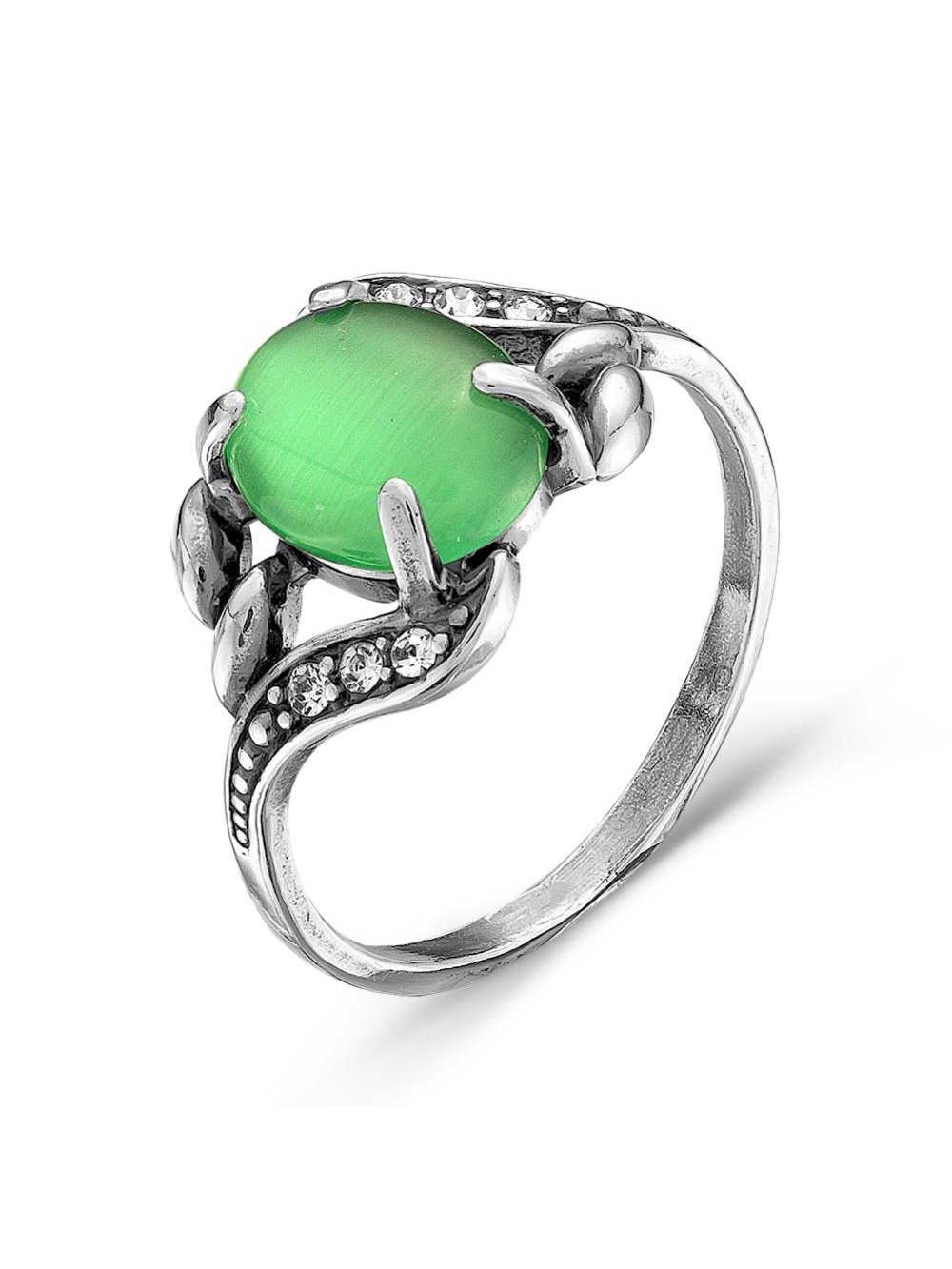 Кольцо бижутерия, покрытие - серебрение с оксидированием, вставка - искусственный кошачий глаз , стекло ювелирное preciosa