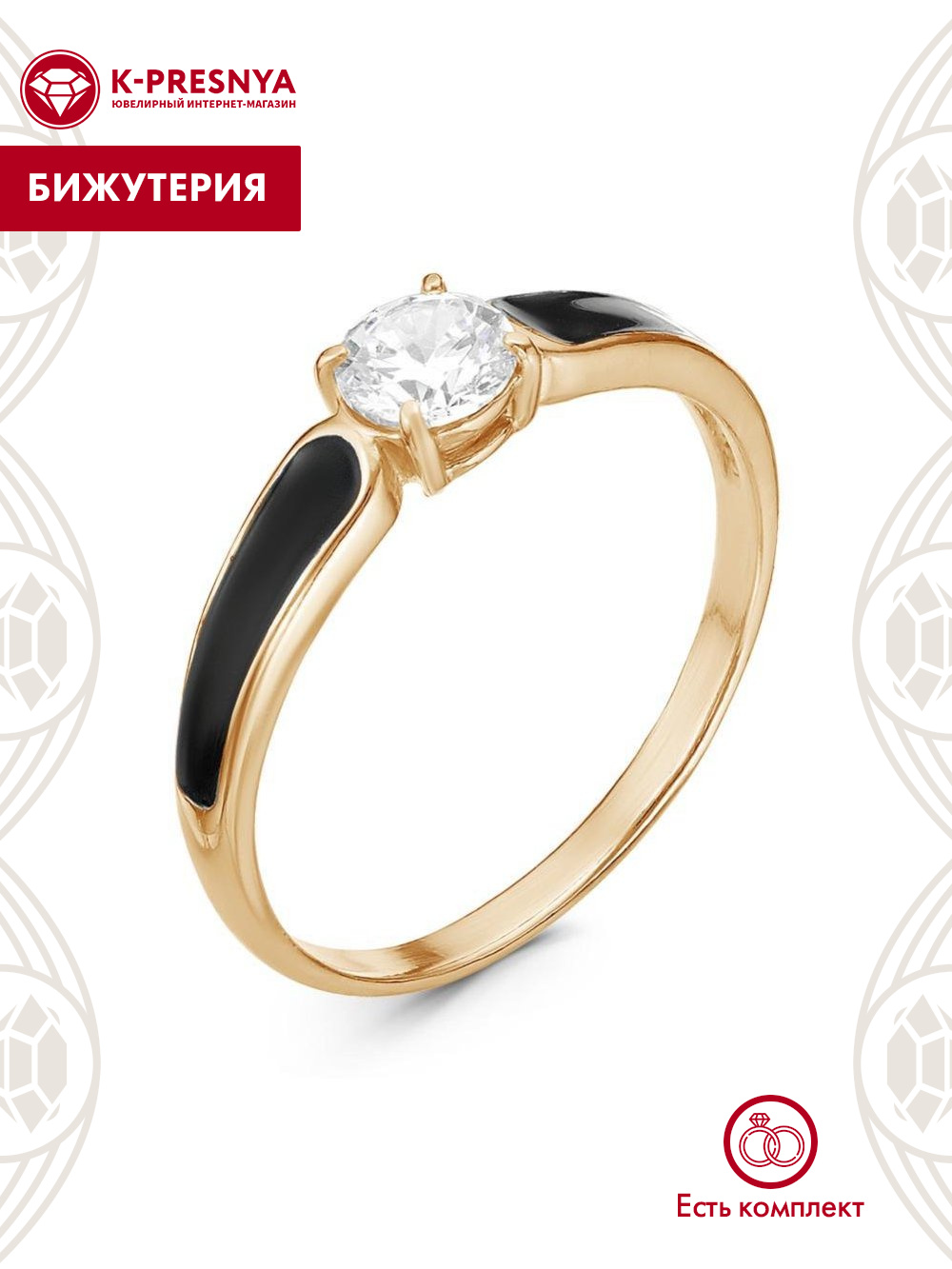 Кольцо бижутерия, покрытие - золочение, отделка - эмаль, вставка - фианит (недрагоценный камень)