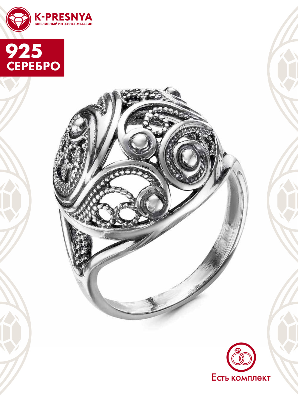 Кольцо серебро 925 пробы, покрытие - оксидирование, без вставок