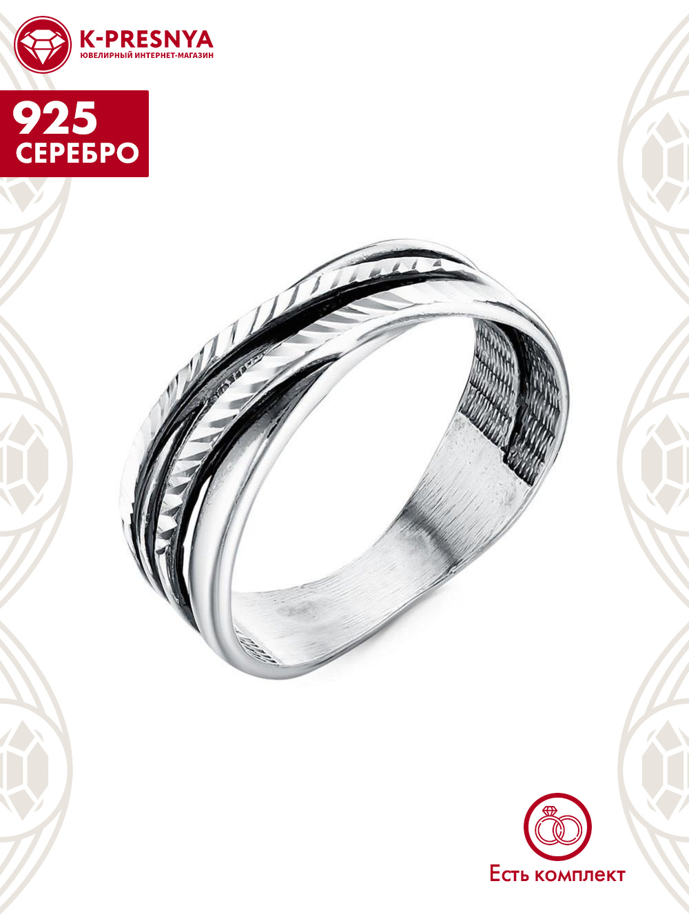 Кольцо серебро 925 пробы, покрытие - оксидирование, отделка - алмазная грань, без вставок