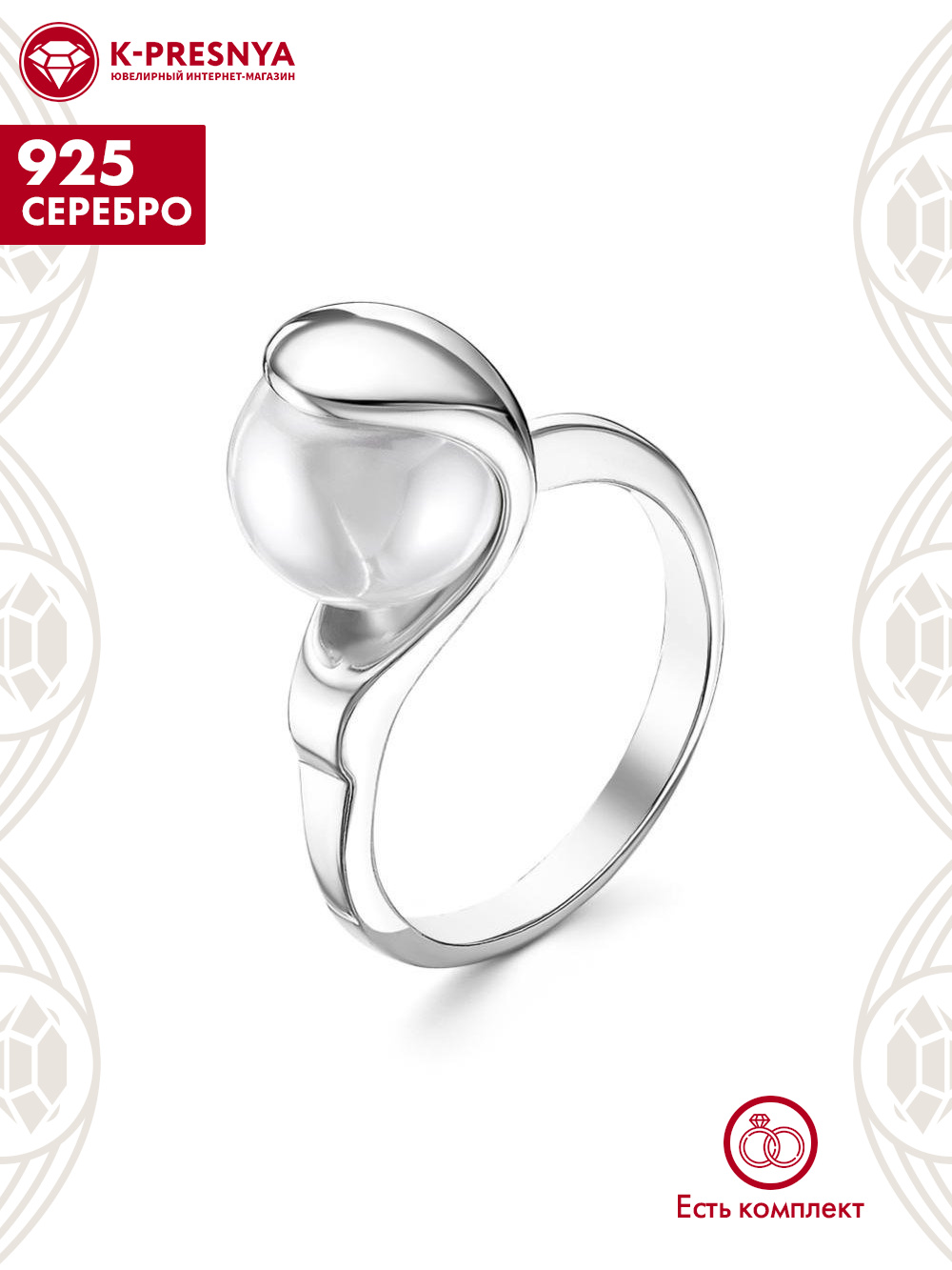 Кольцо серебро 925 пробы, покрытие - родирование, вставка - имитация жемчуга