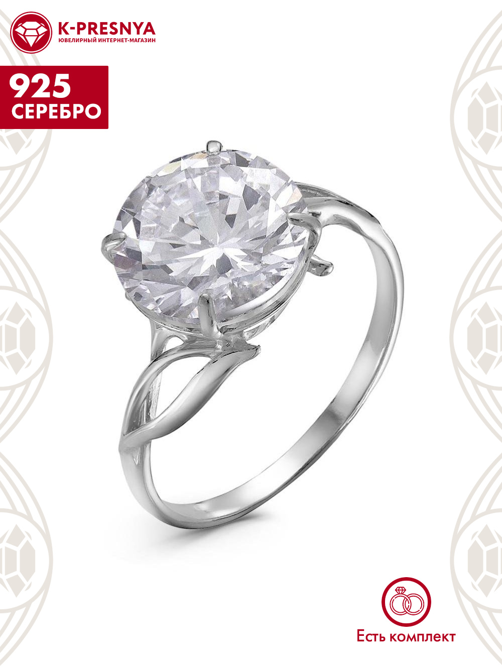 Кольцо серебро 925 пробы, покрытие - родирование, вставка - фианит (недрагоценный камень)