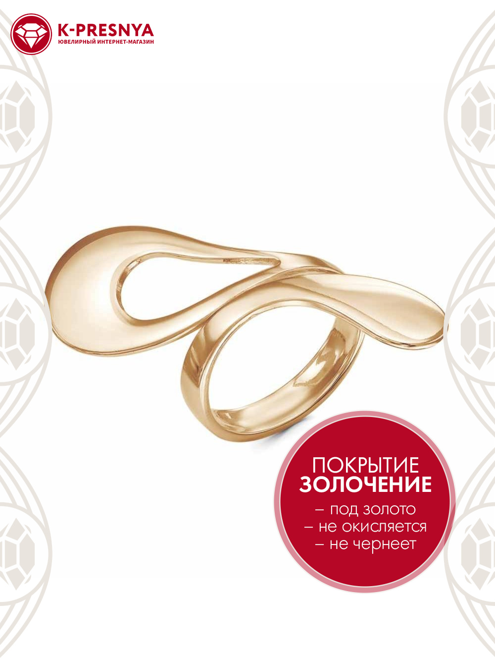 Кольцо серебро 925 пробы, покрытие - золочение, без вставок