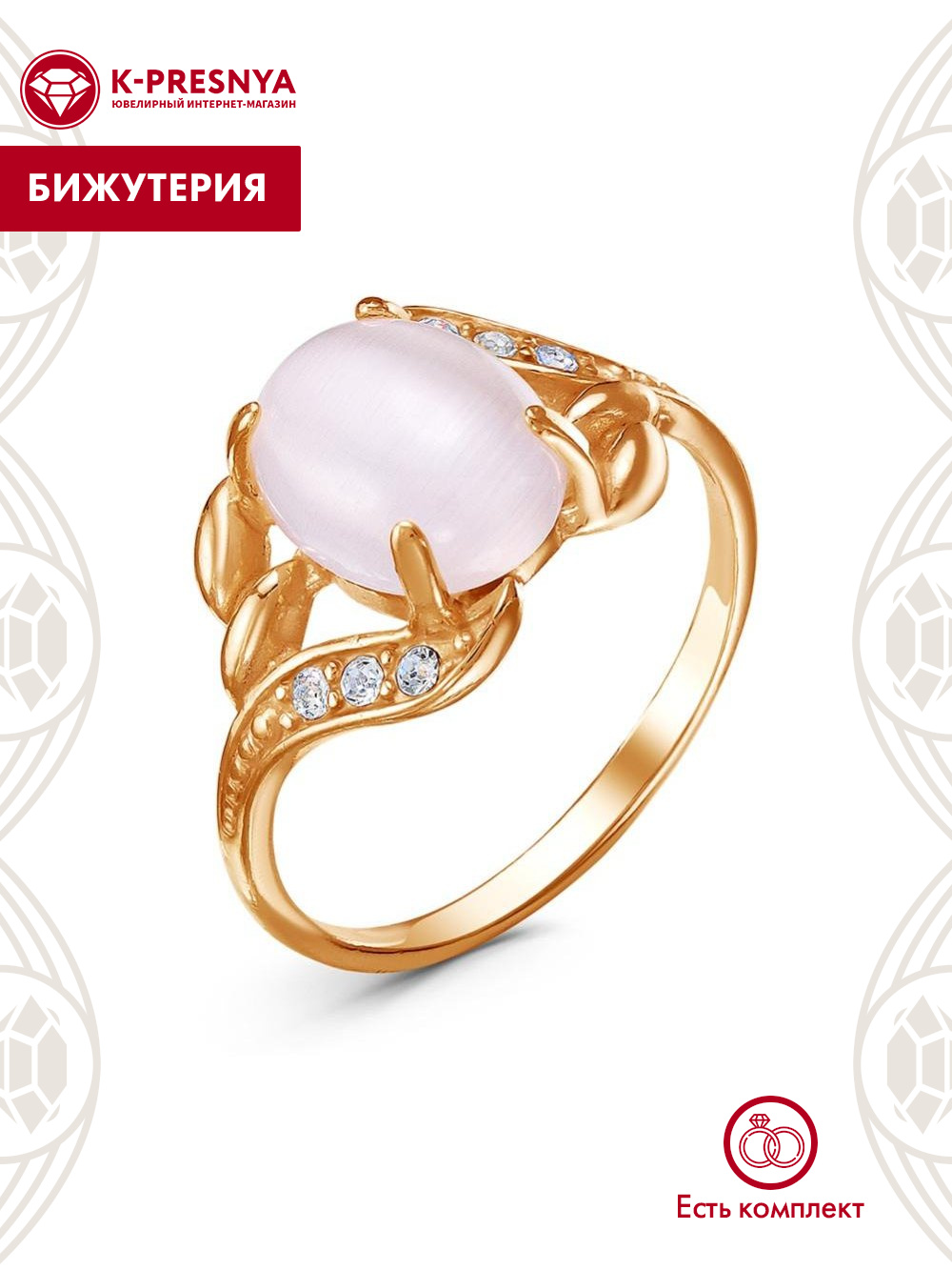 Кольцо бижутерия, покрытие - золочение, вставка - искусственный кошачий глаз , стекло ювелирное preciosa
