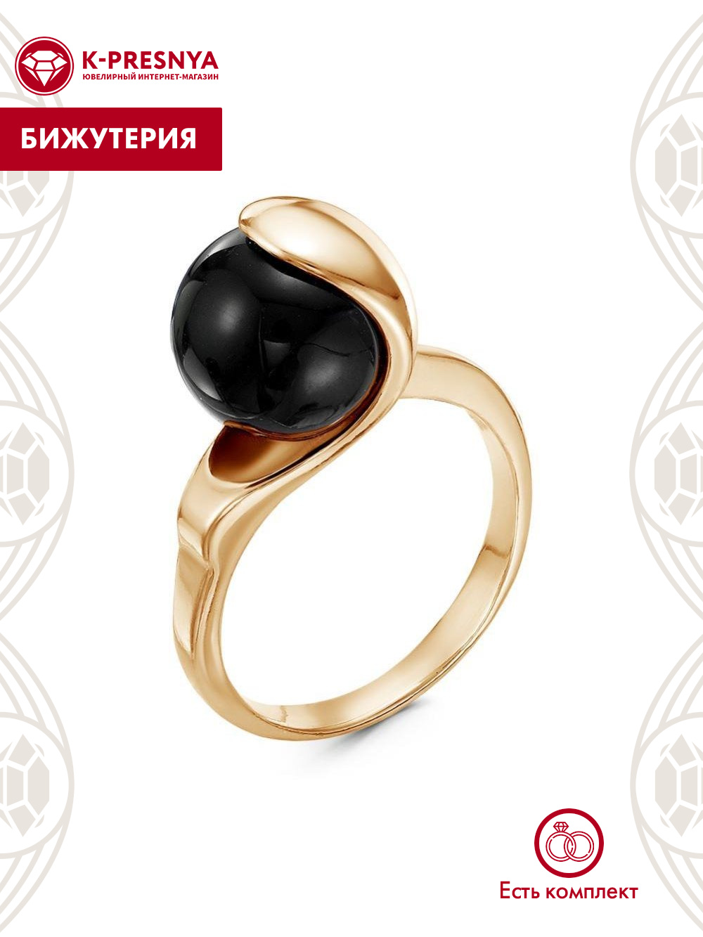 Кольцо бижутерия, покрытие - золочение, вставка - имитация жемчуга
