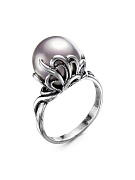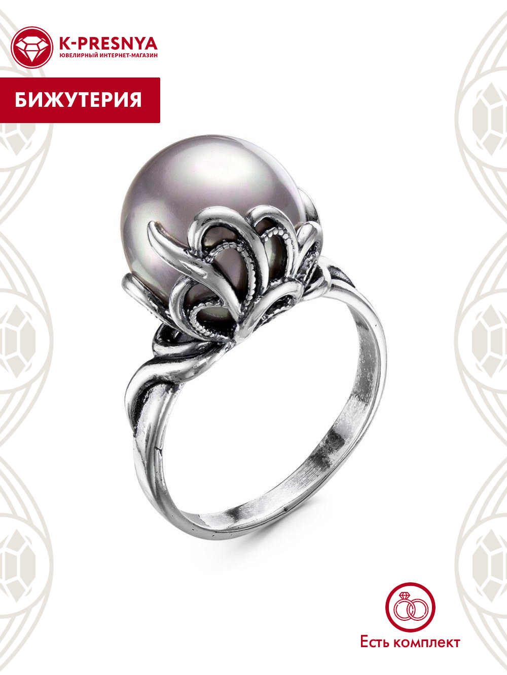 Кольцо бижутерия, покрытие - серебрение с оксидированием, вставка - имитация жемчуга