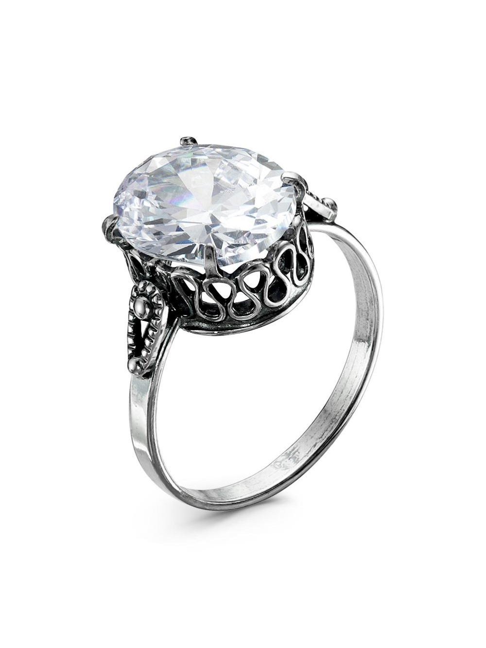 Кольцо бижутерия, покрытие - серебрение с оксидированием, вставка - стекло ювелирное
