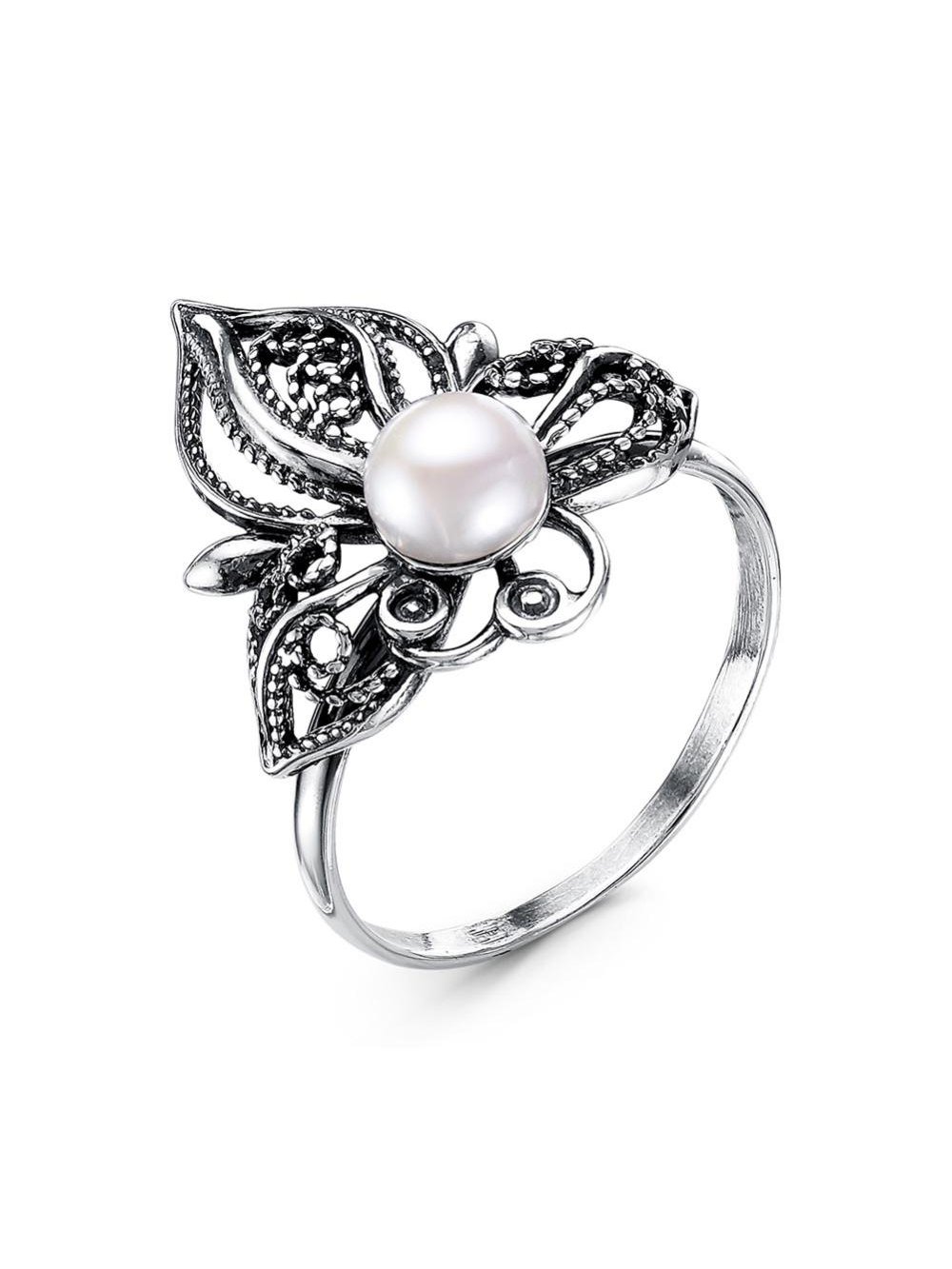 Кольцо бижутерия, покрытие - серебрение с оксидированием, вставка - культивированный жемчуг