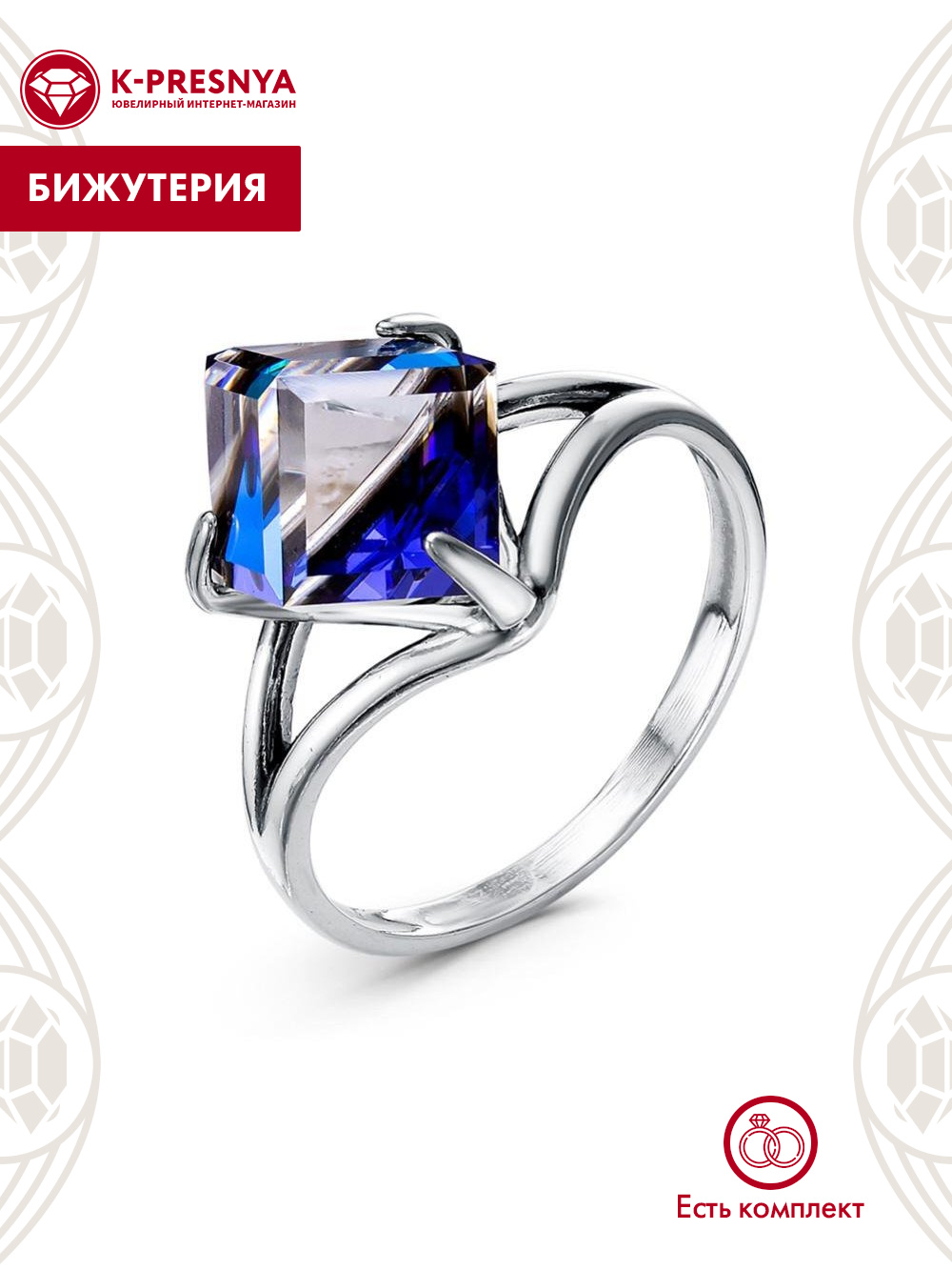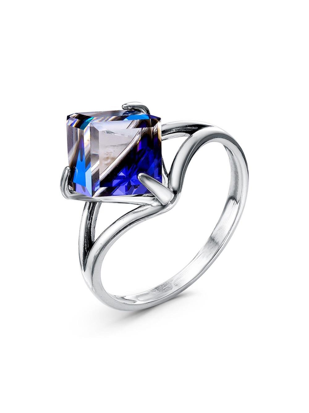 Кольцо бижутерия, покрытие - серебрение с оксидированием, вставка - ювелирное стекло европейской огранки