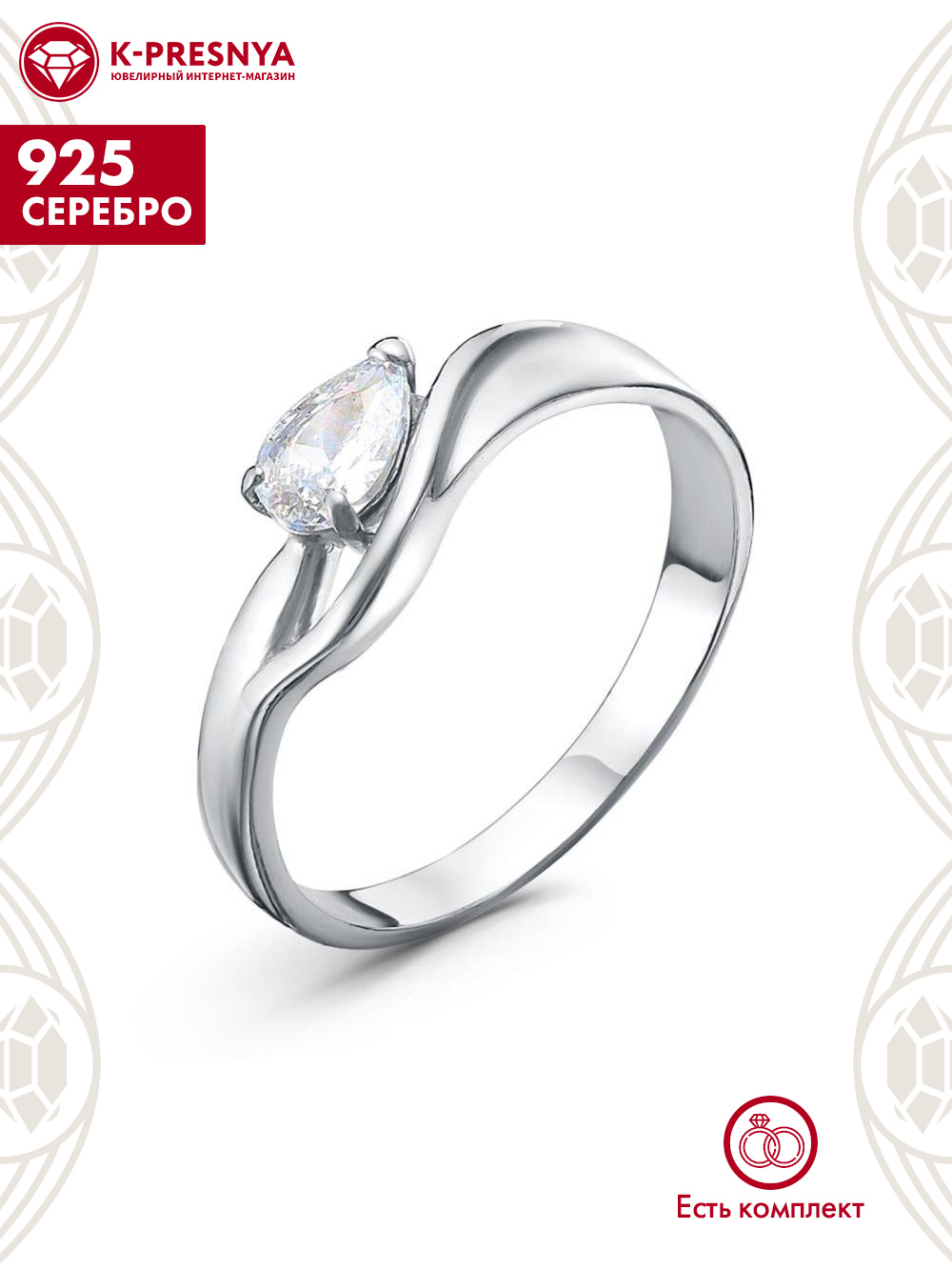 Кольцо серебро 925 пробы, покрытие - родирование, вставка - фианит (недрагоценный камень)