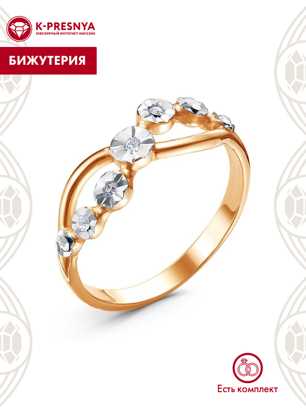 Кольцо бижутерия, покрытие - золочение, отделка - алмазная грань, вставка - стекло ювелирное preciosa