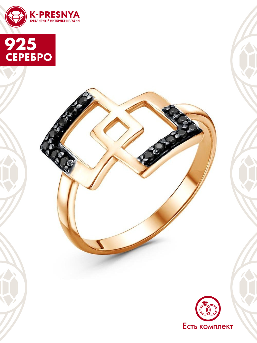 Кольцо серебро 925 пробы, покрытие - золочение, выборочное родирование, вставка - фианит (недрагоценный камень)