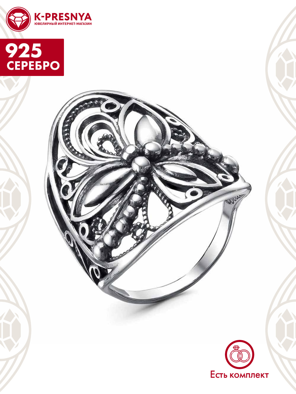 -Кольцо серебро 925 пробы, покрытие - оксидирование, без вставок