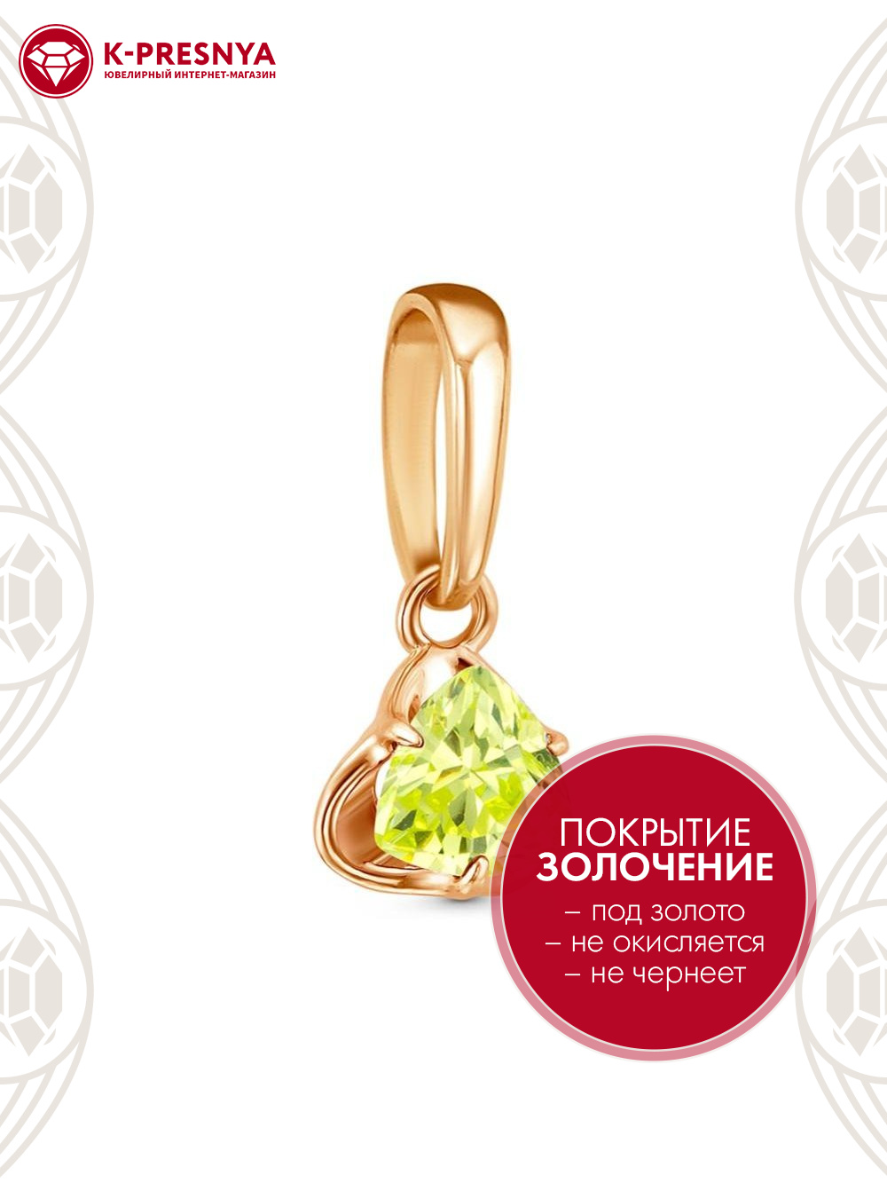 Подвеска бижутерия, покрытие - золочение, вставка - фианит (недрагоценный камень)