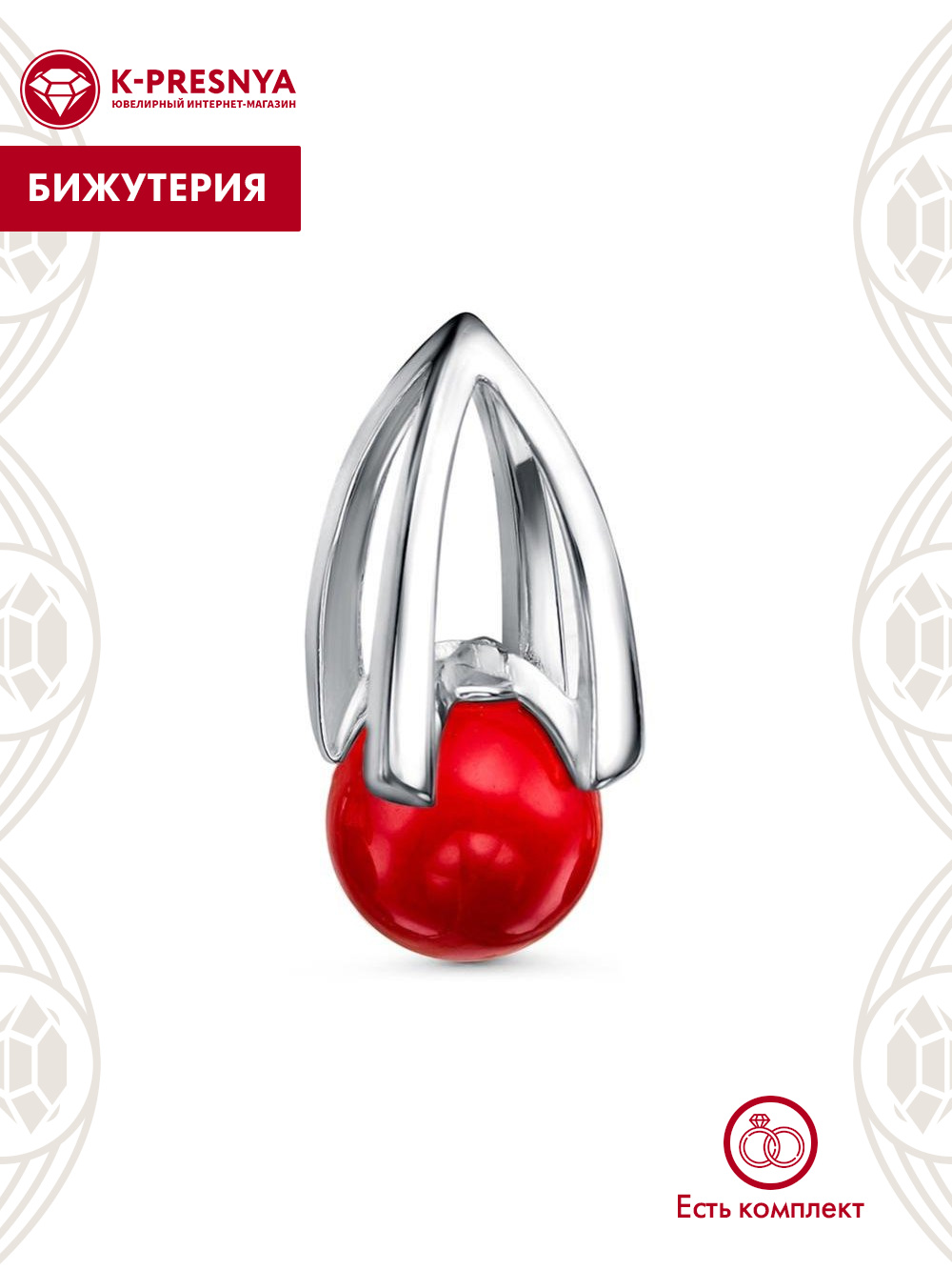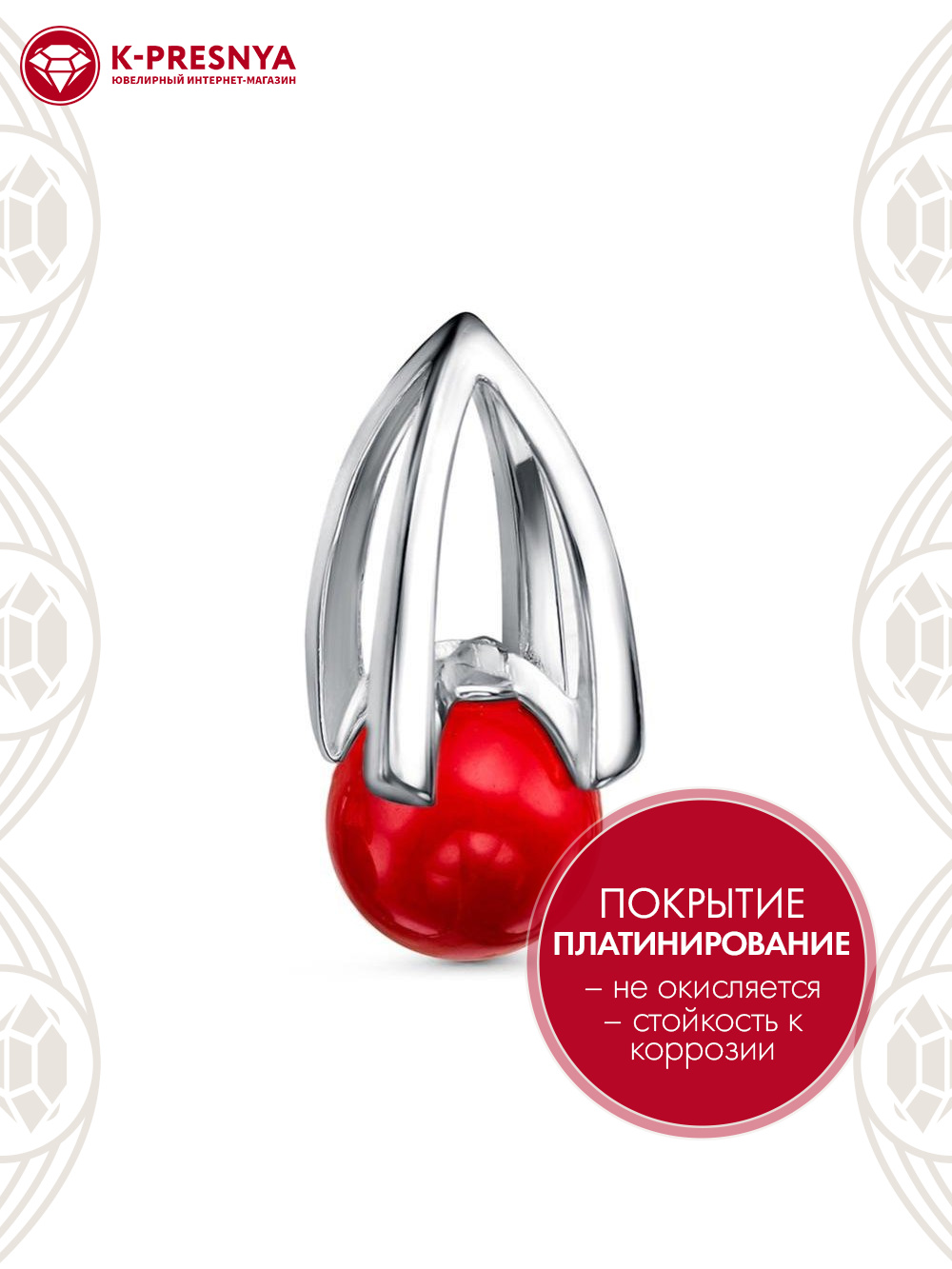 Подвеска бижутерия, покрытие - платинирование, вставка - имитация жемчуга
