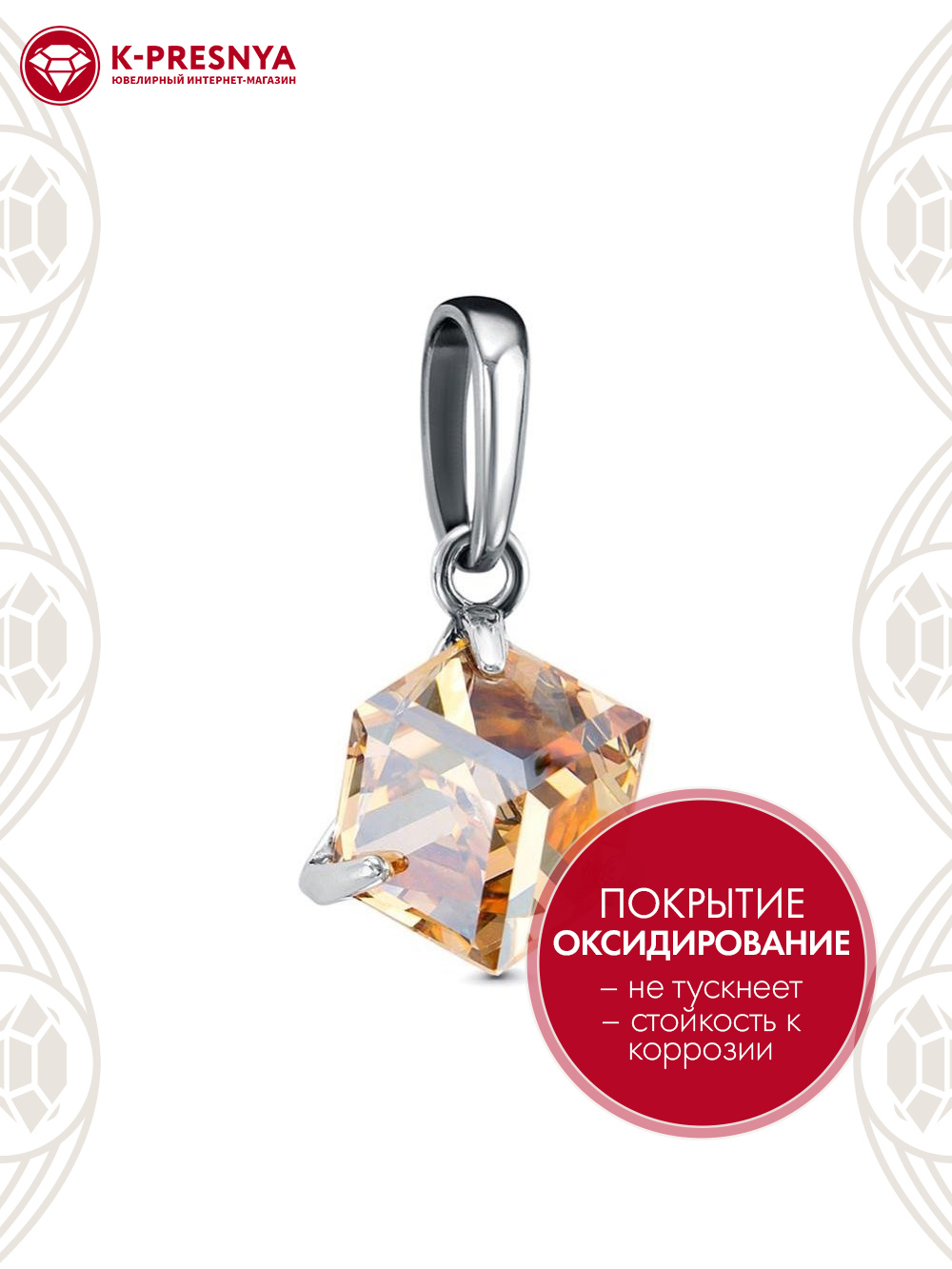 Подвеска серебро 925 пробы, покрытие - оксидирование, вставка - ювелирное стекло европейской огранки