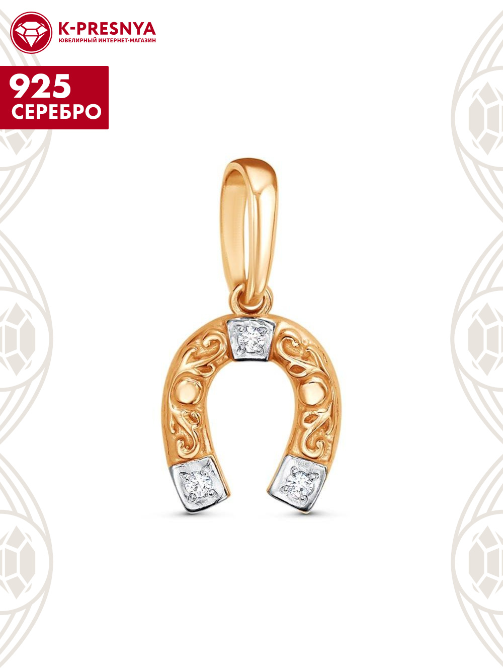 Подвеска серебро 925 пробы, покрытие - золочение, выборочное родирование, вставка - фианит (недрагоценный камень)