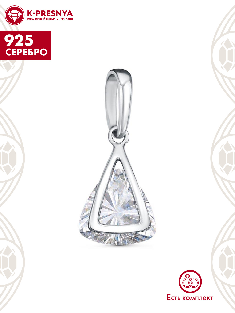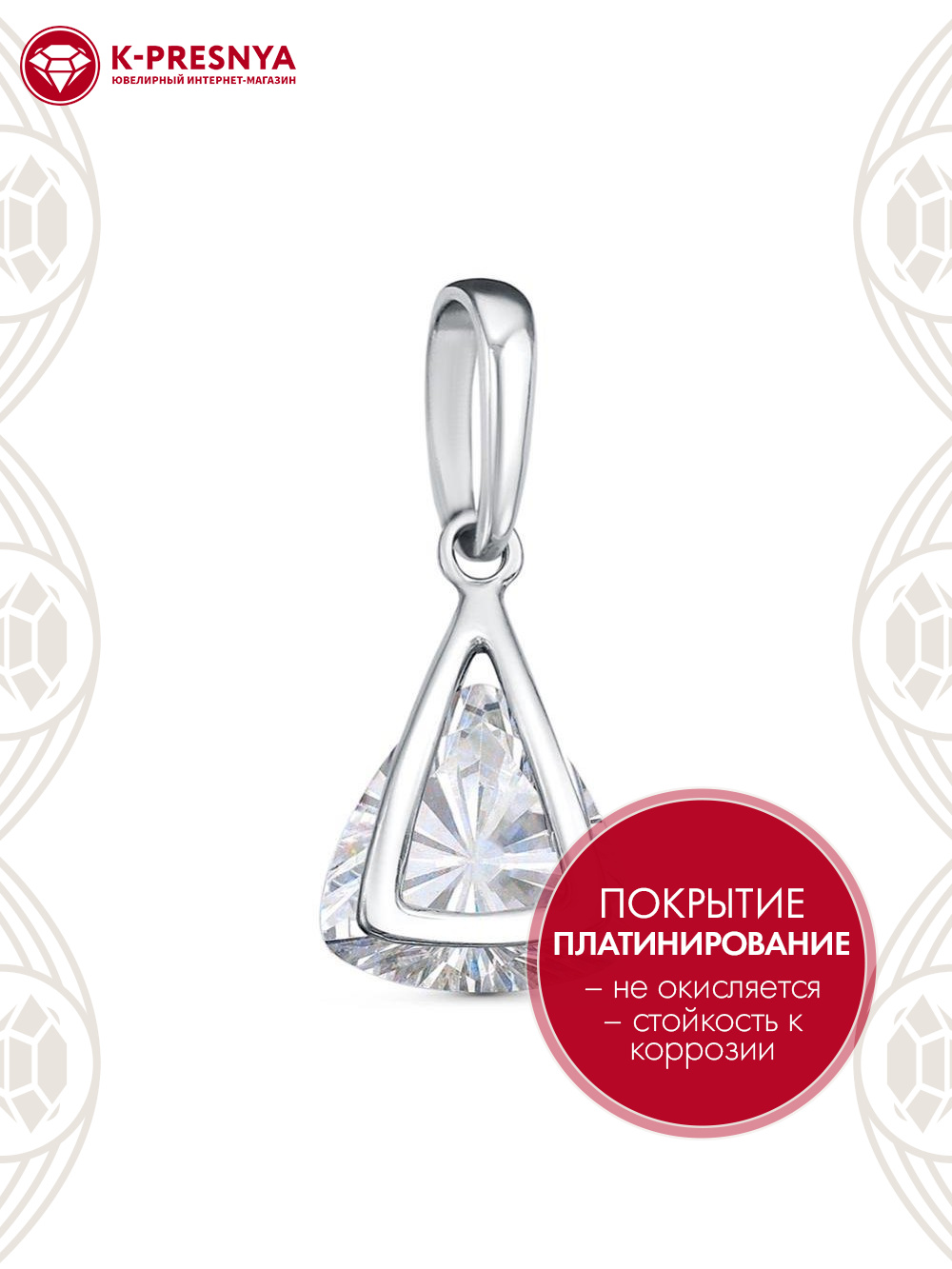 Подвеска серебро 925 пробы, покрытие - платинирование, вставка - фианит (недрагоценный камень)