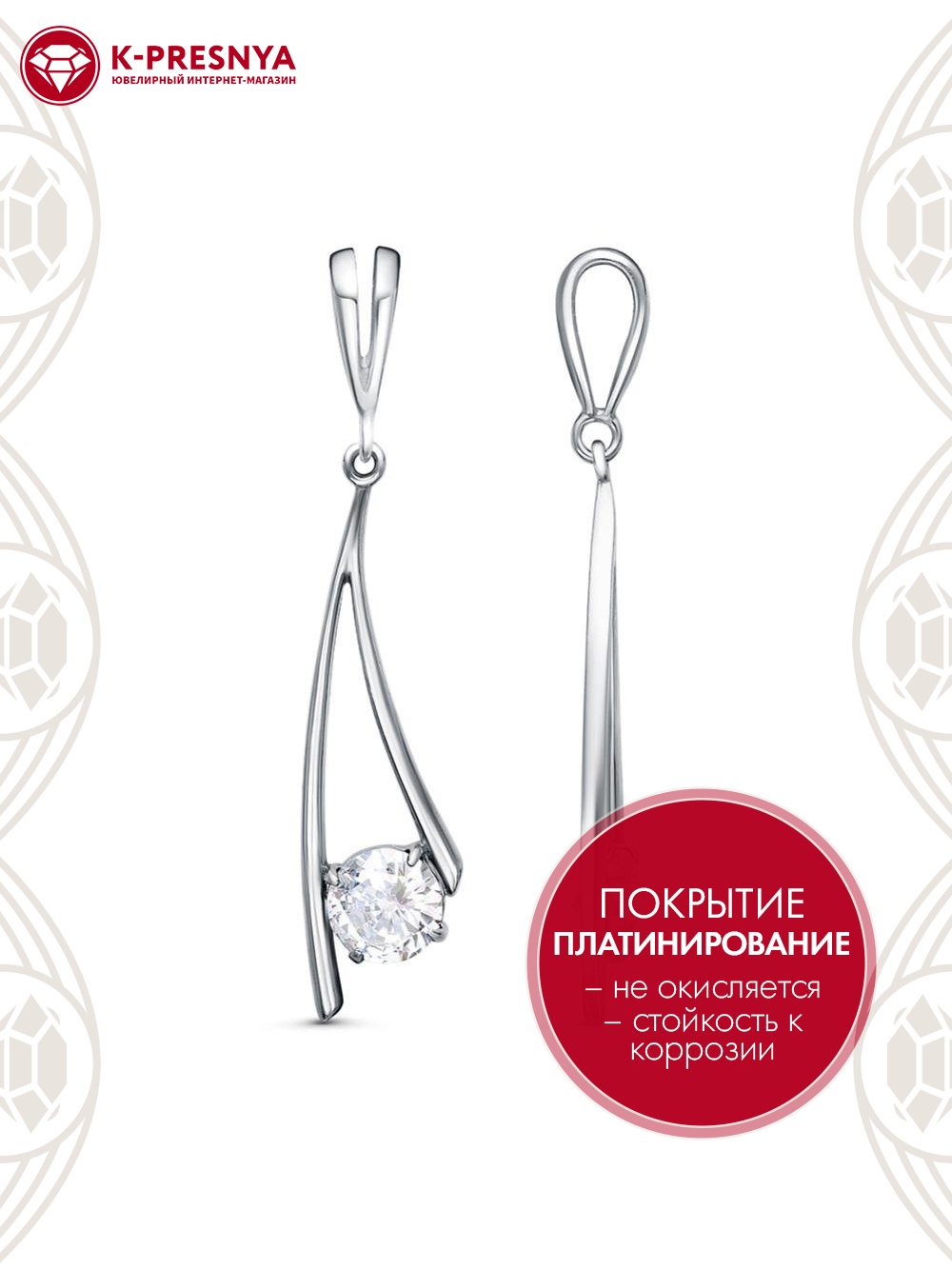 Подвеска бижутерия, покрытие - платинирование, вставка - фианит (недрагоценный камень)