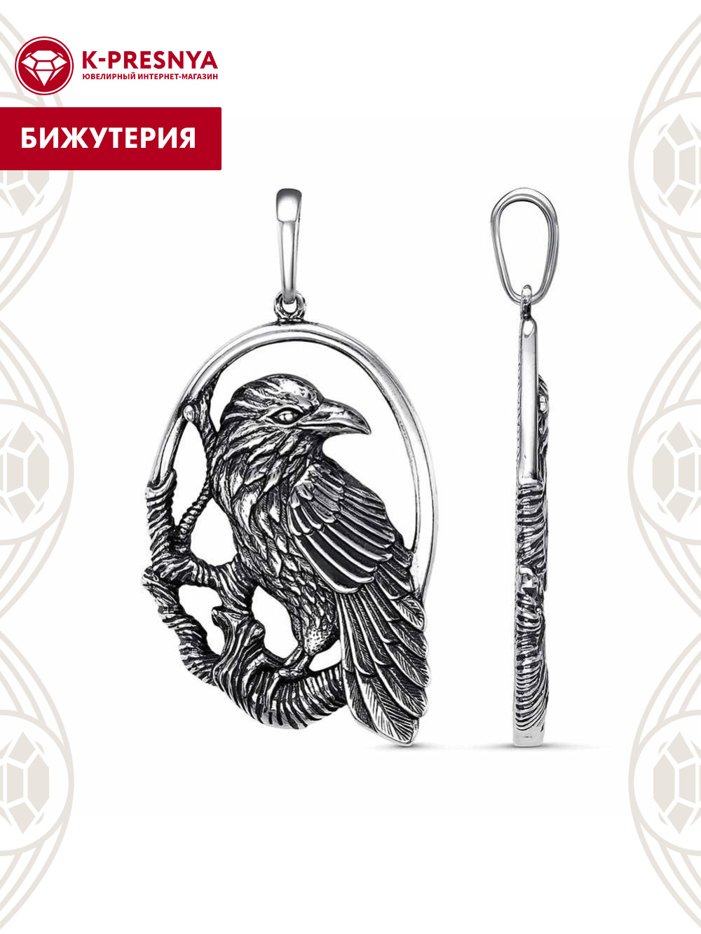 Подвеска бижутерия, покрытие - серебрение с оксидированием, без вставок