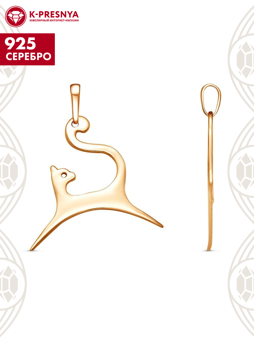 Подвеска серебро 925 пробы, покрытие - золочение, без вставок
