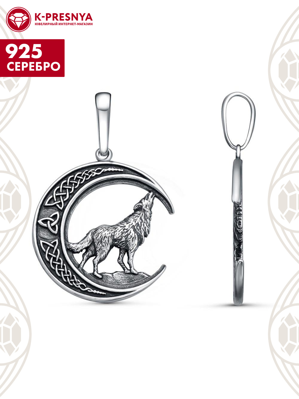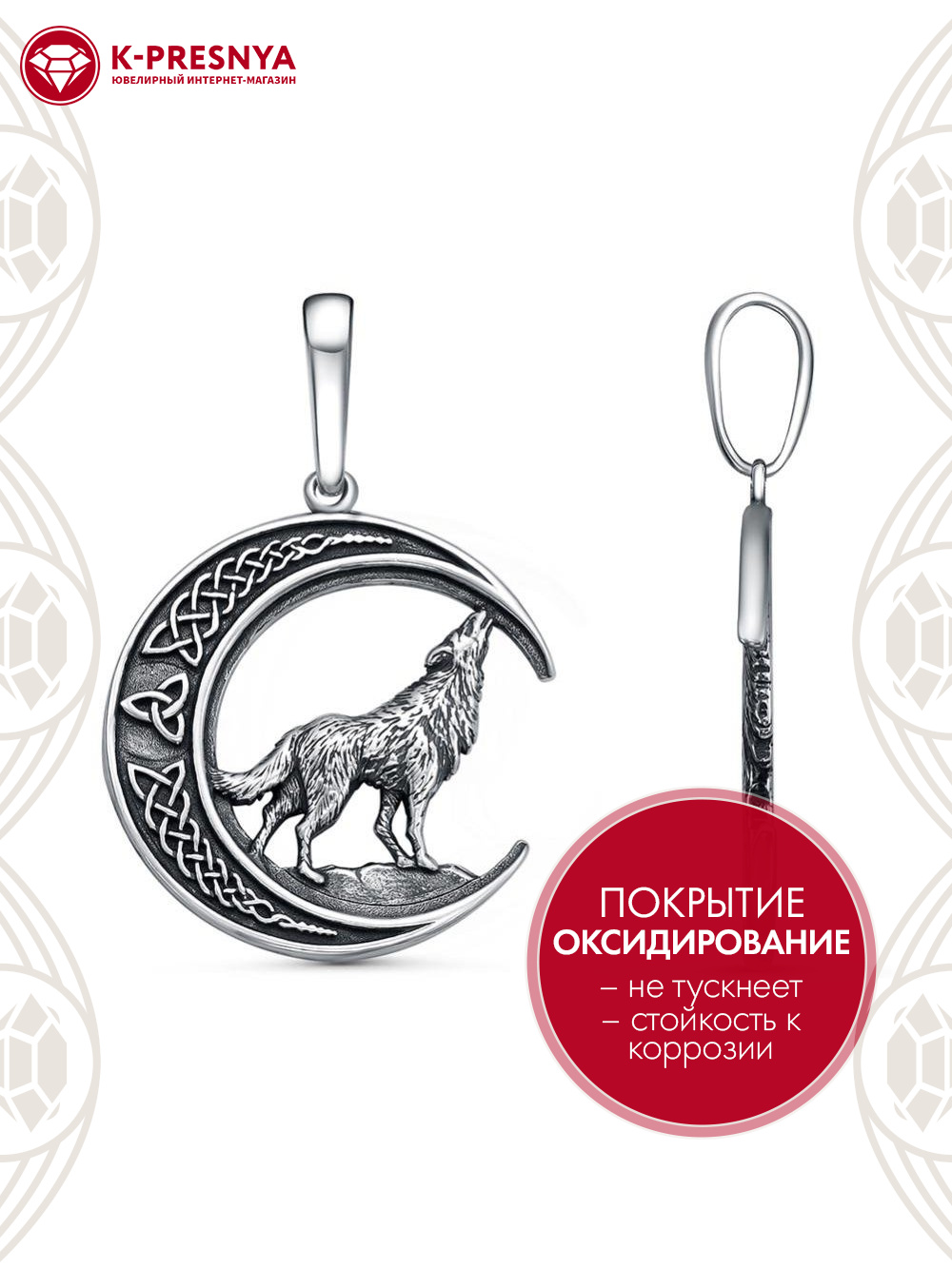 Подвеска серебро 925 пробы, покрытие - оксидирование, без вставок