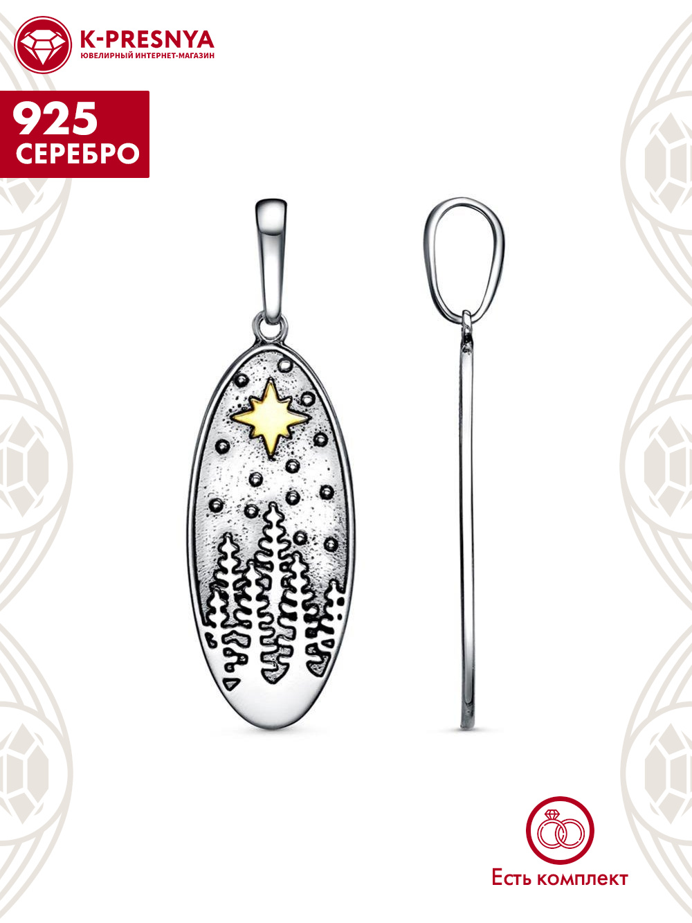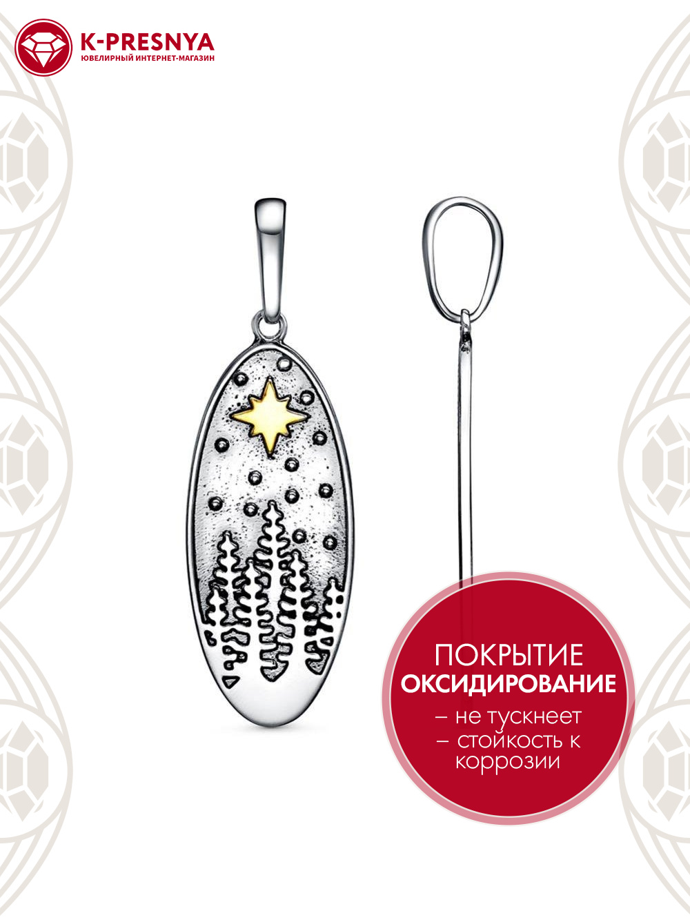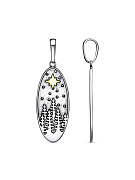 Подвеска серебро 925 пробы, покрытие - оксидирование, выборочное золочение, без вставок