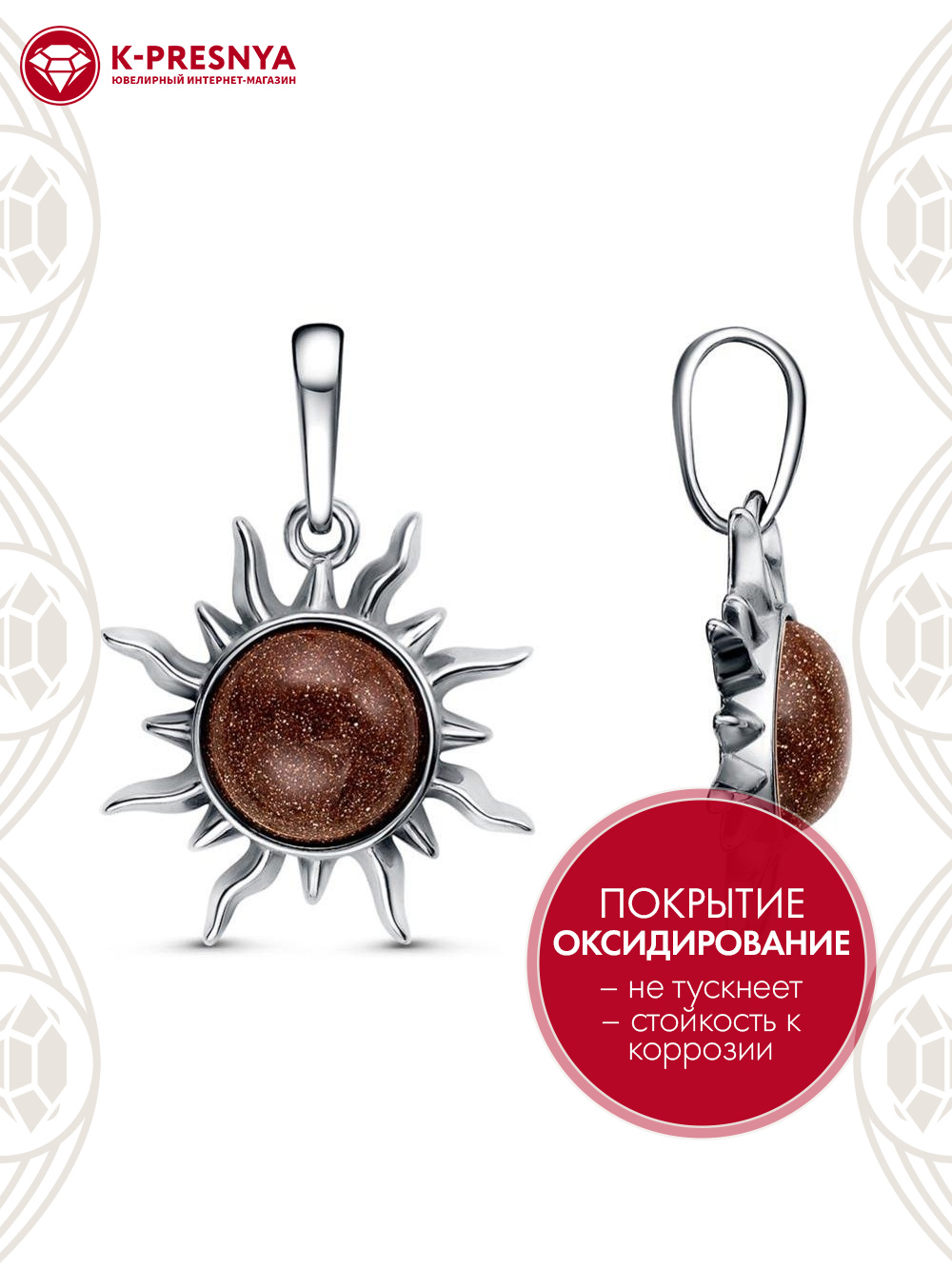 Подвеска серебро 925 пробы, покрытие - оксидирование, вставка - искусственный авантюрин