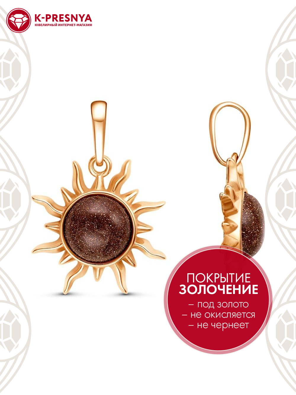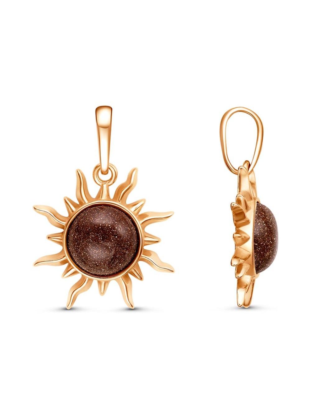 Подвеска серебро 925 пробы, покрытие - золочение, вставка - искусственный авантюрин