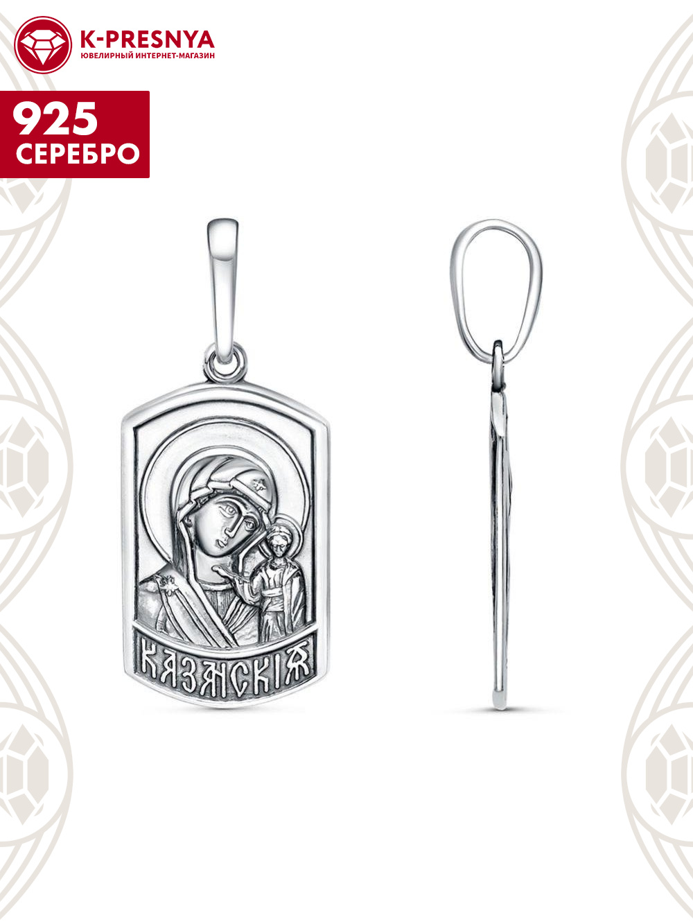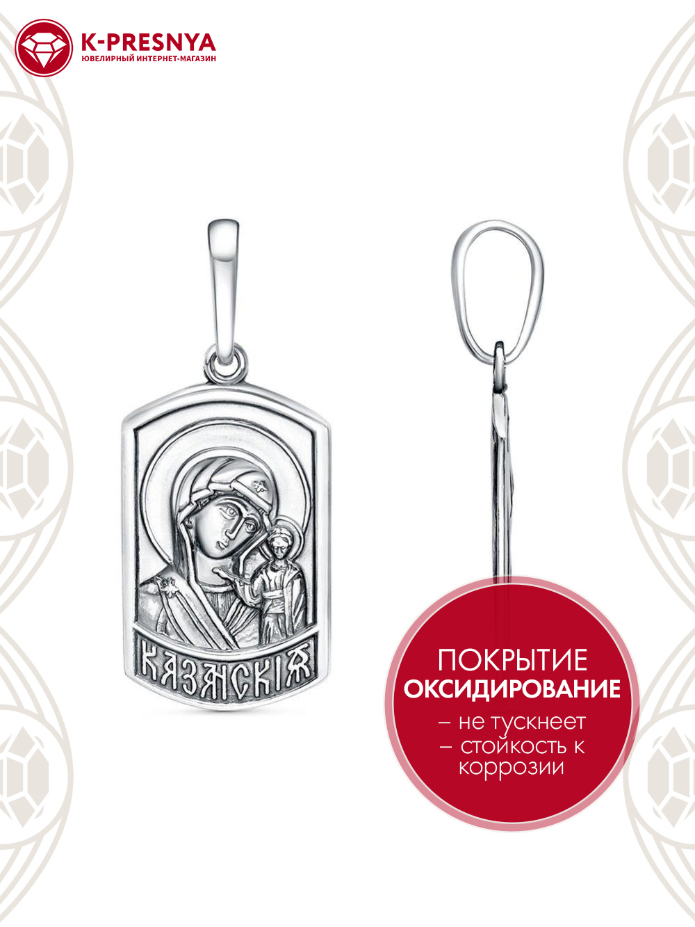 Подвеска "казанская" серебро 925 пробы, покрытие - оксидирование, без вставок