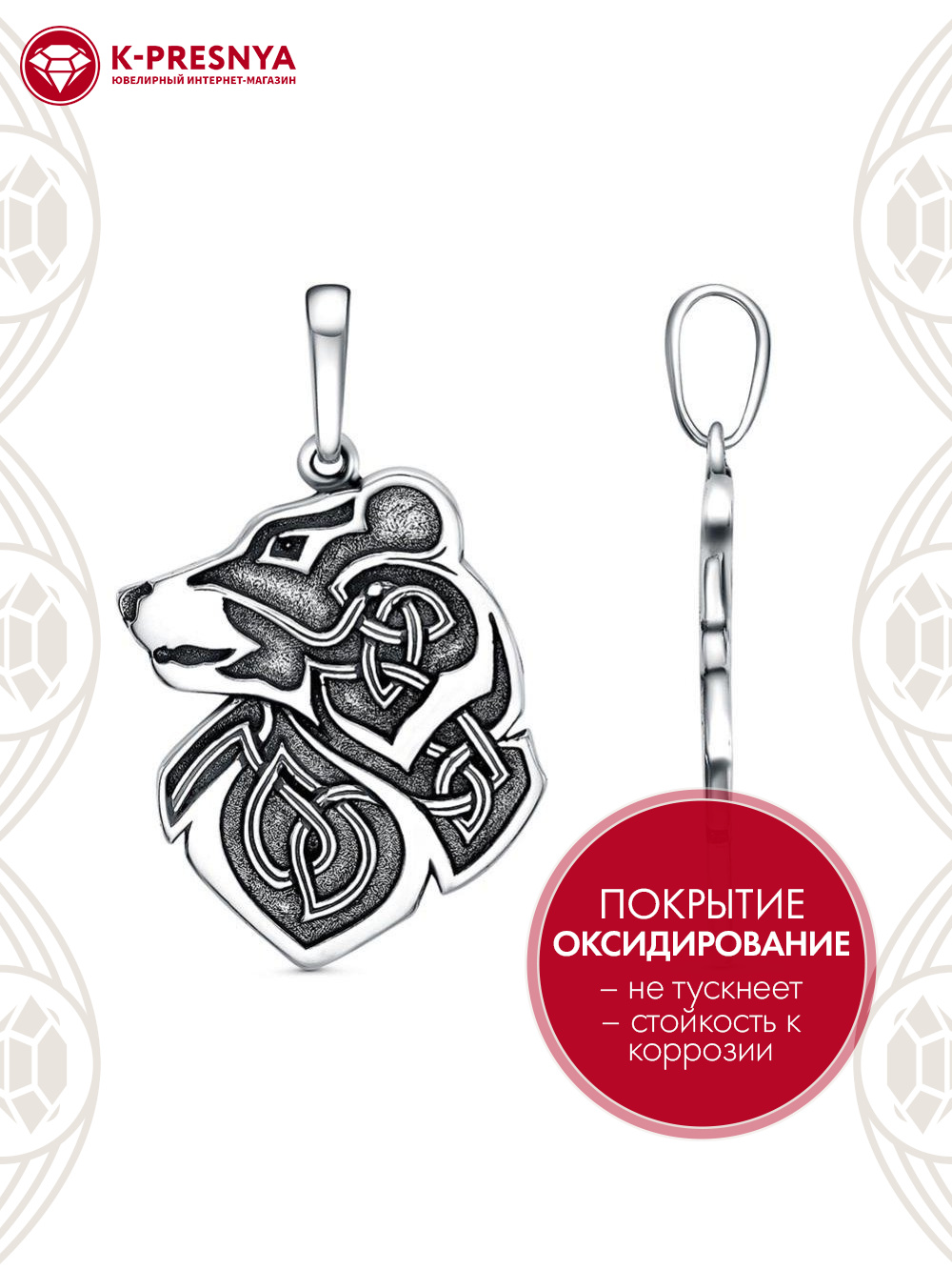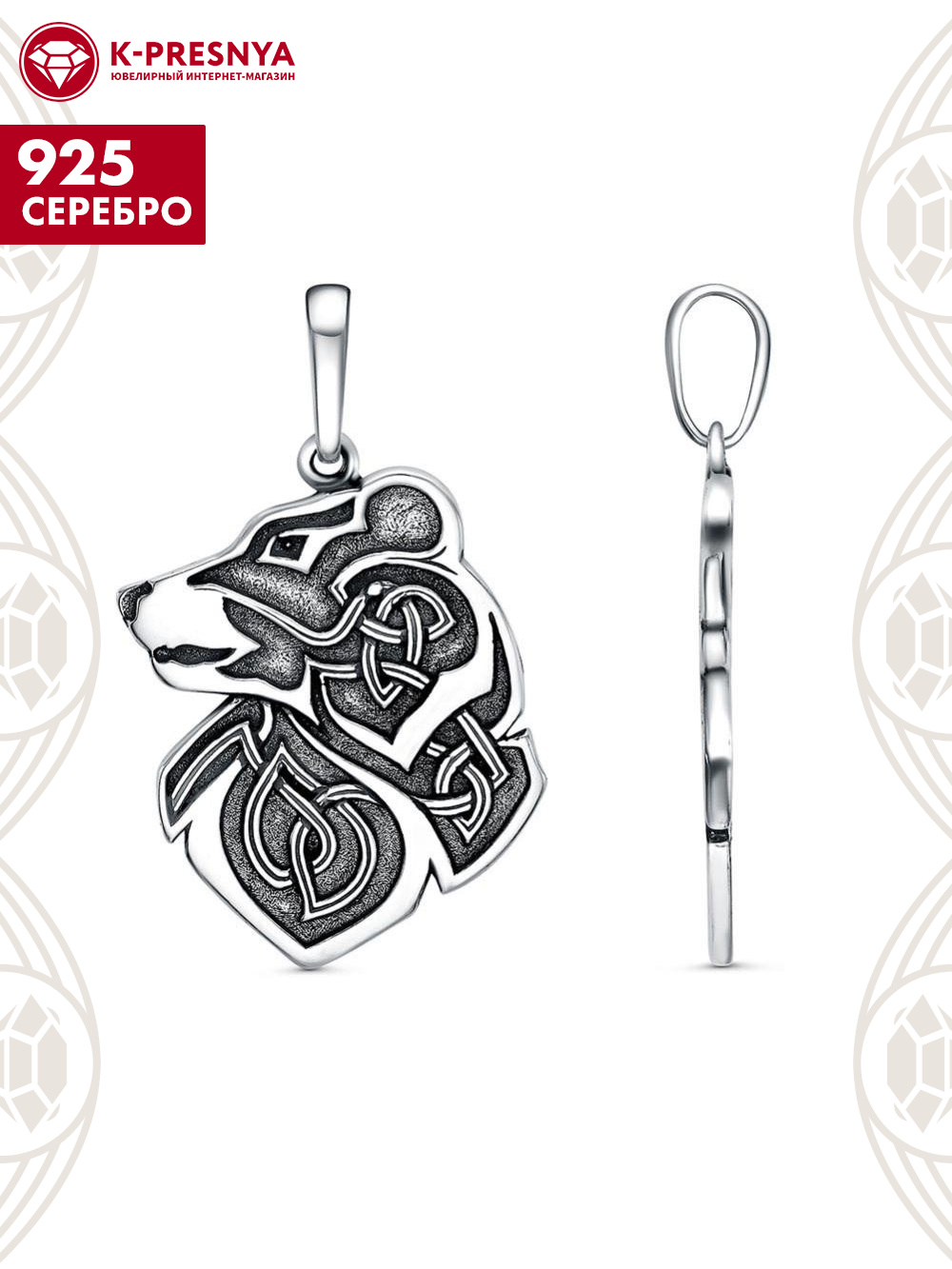 Подвеска серебро 925 пробы, покрытие - оксидирование, без вставок