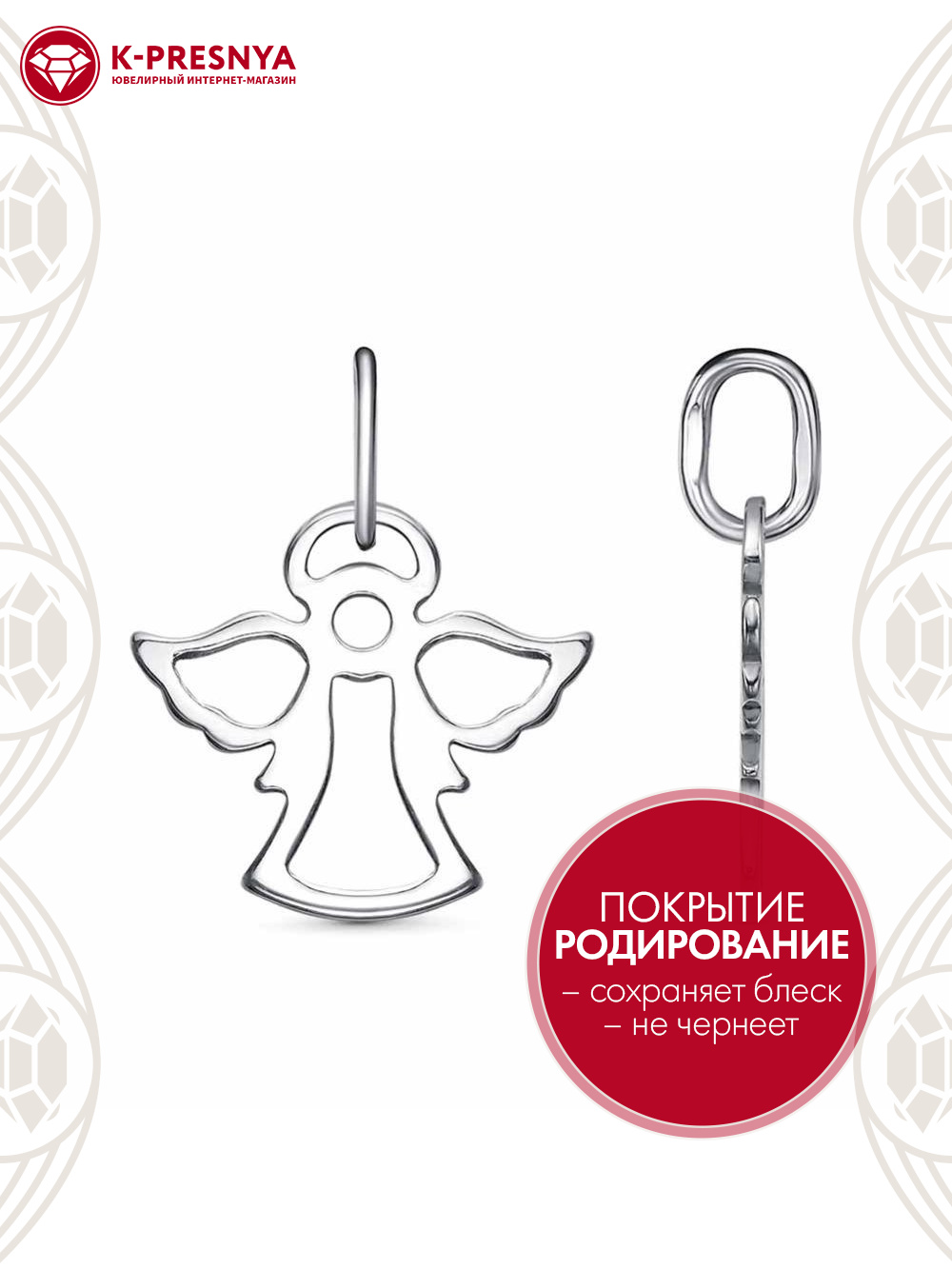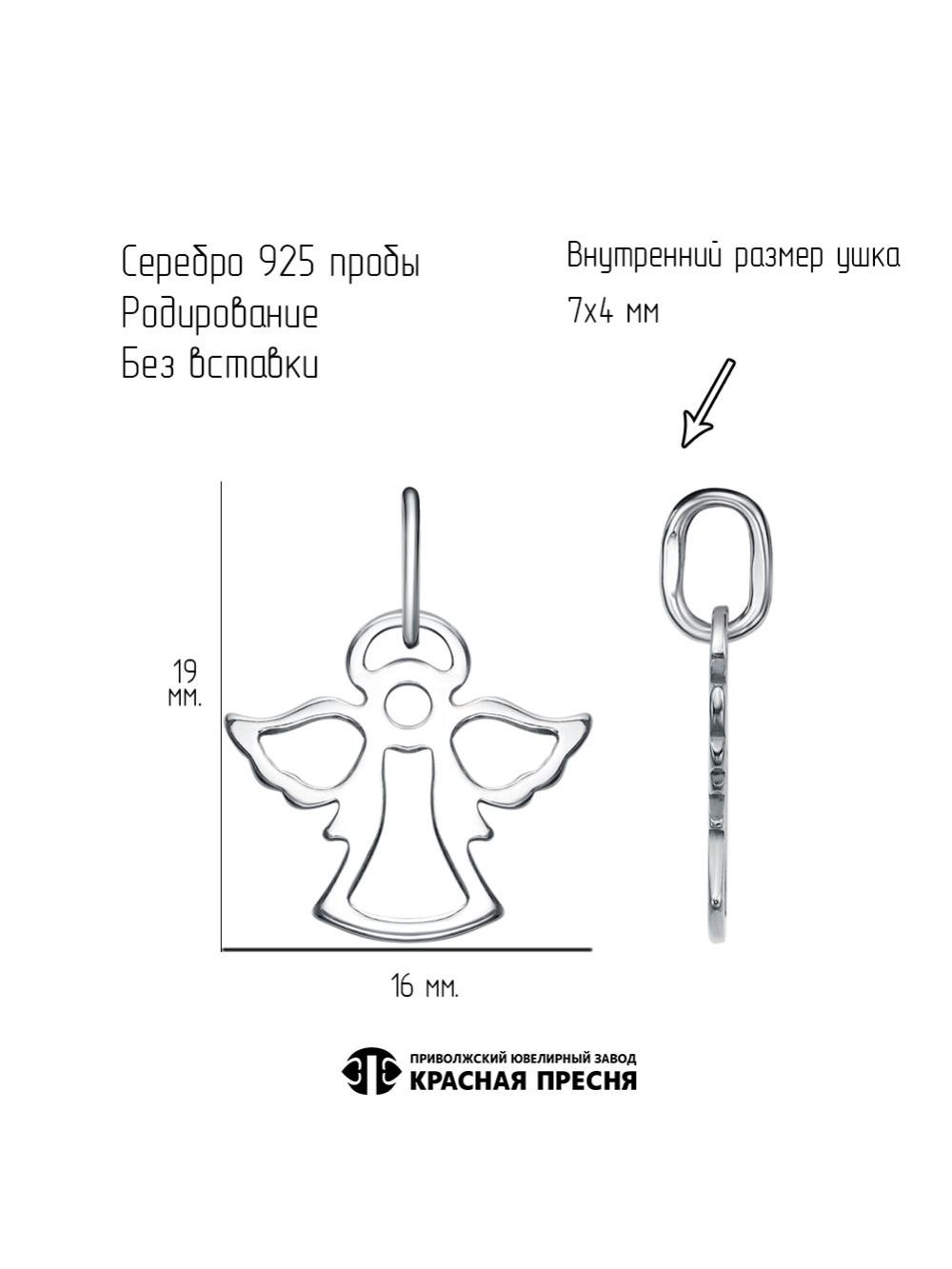 Подвеска серебро 925 пробы, покрытие - родирование, без вставок