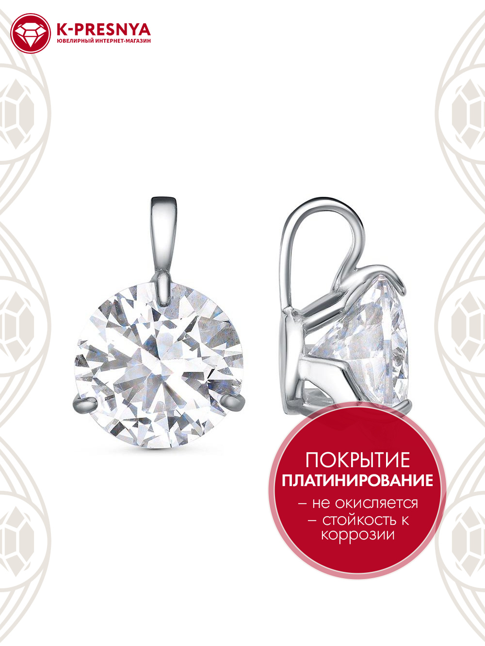 Подвеска серебро 925 пробы, покрытие - платинирование, вставка - горный хрусталь