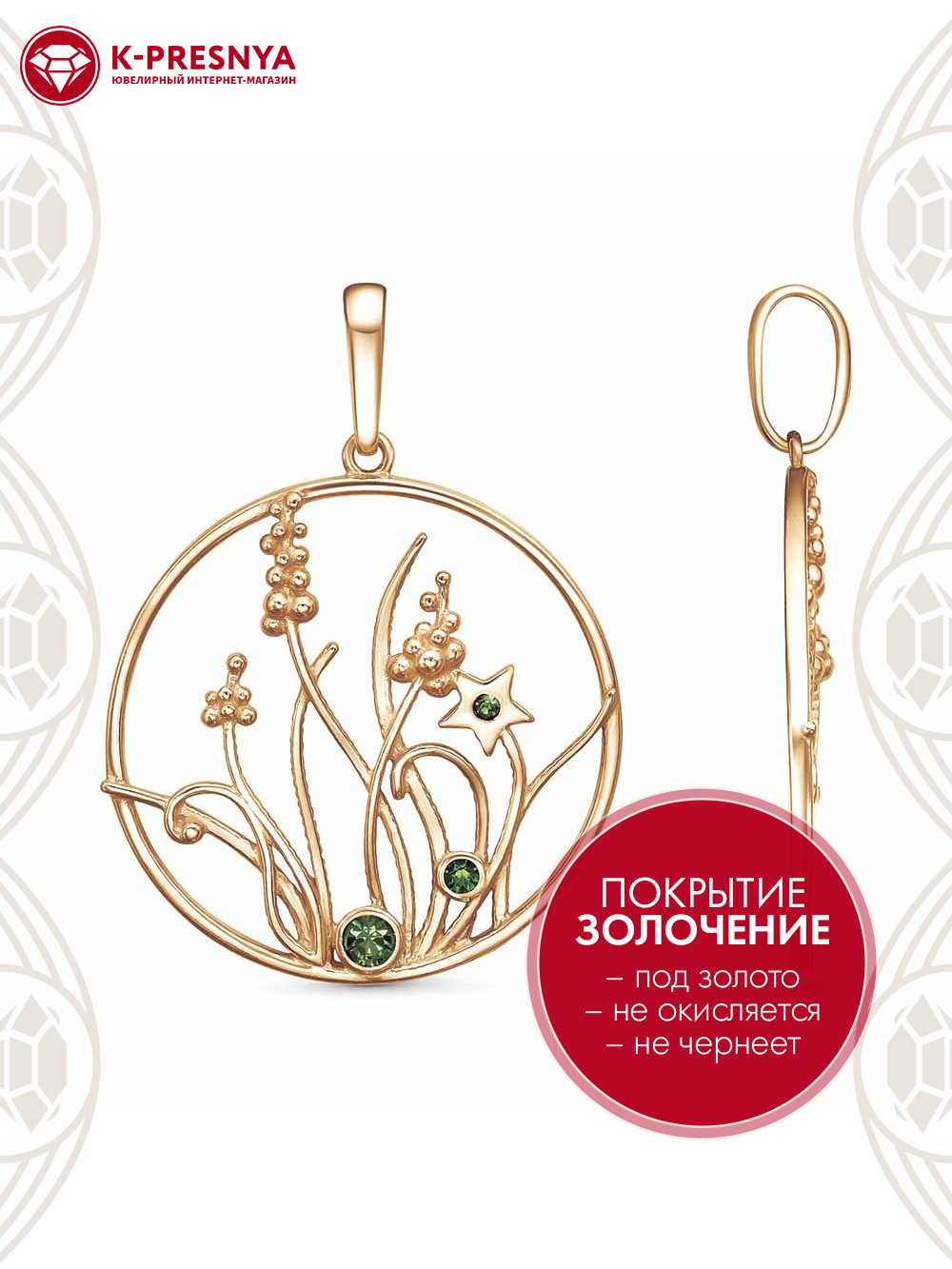 Подвеска бижутерия, покрытие - золочение, вставка - стекло ювелирное preciosa