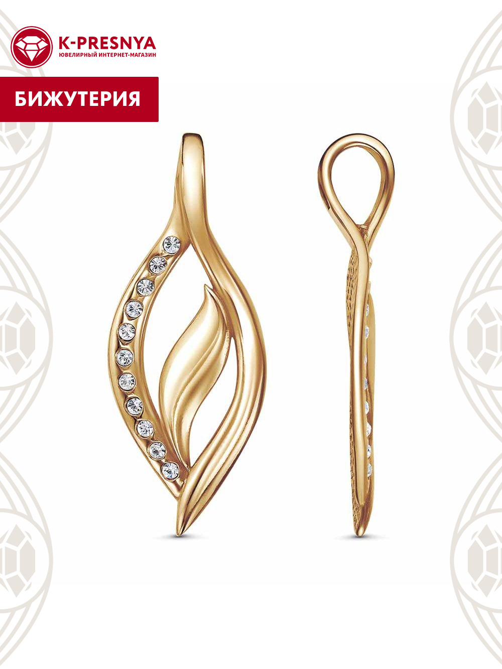 Подвеска бижутерия, покрытие - золочение, вставка - стекло ювелирное preciosa