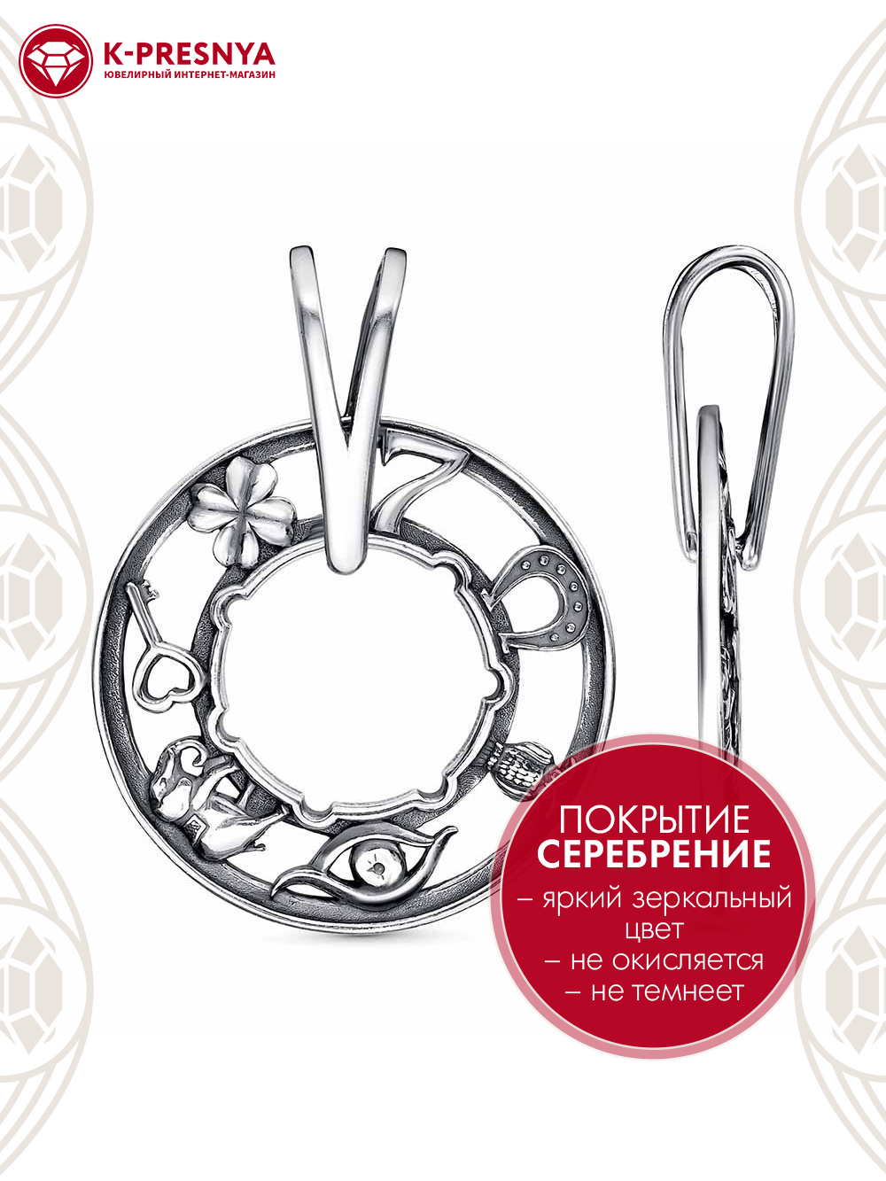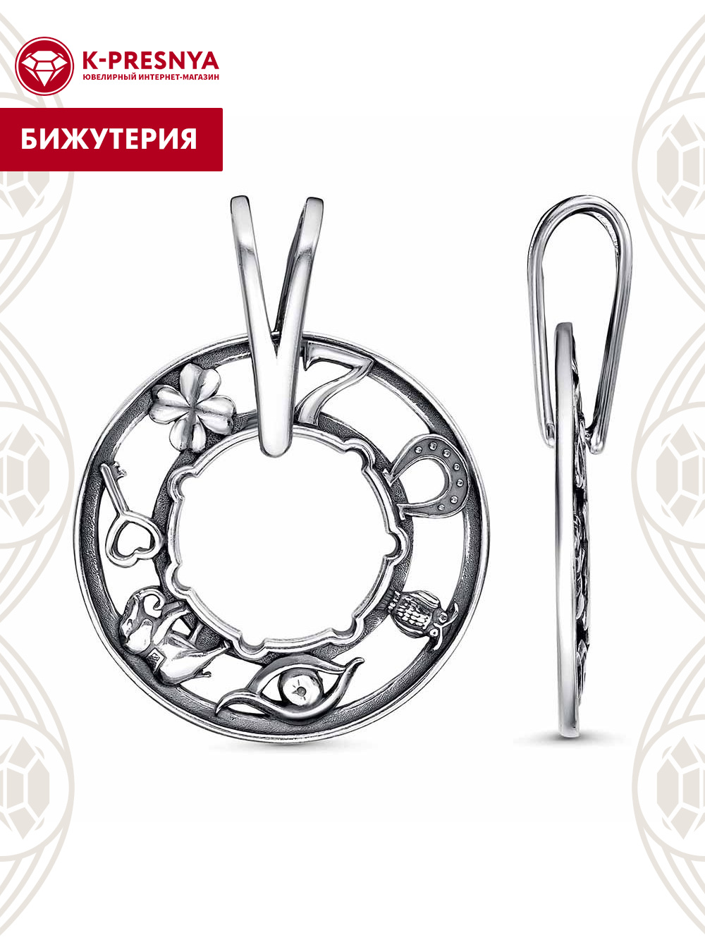 Подвеска бижутерия, покрытие - серебрение с оксидированием, без вставок