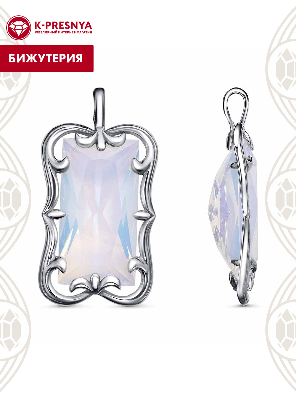Подвеска бижутерия, покрытие - серебрение с оксидированием, вставка - стекло ювелирное собственной огранки