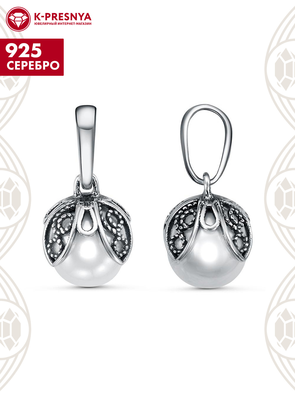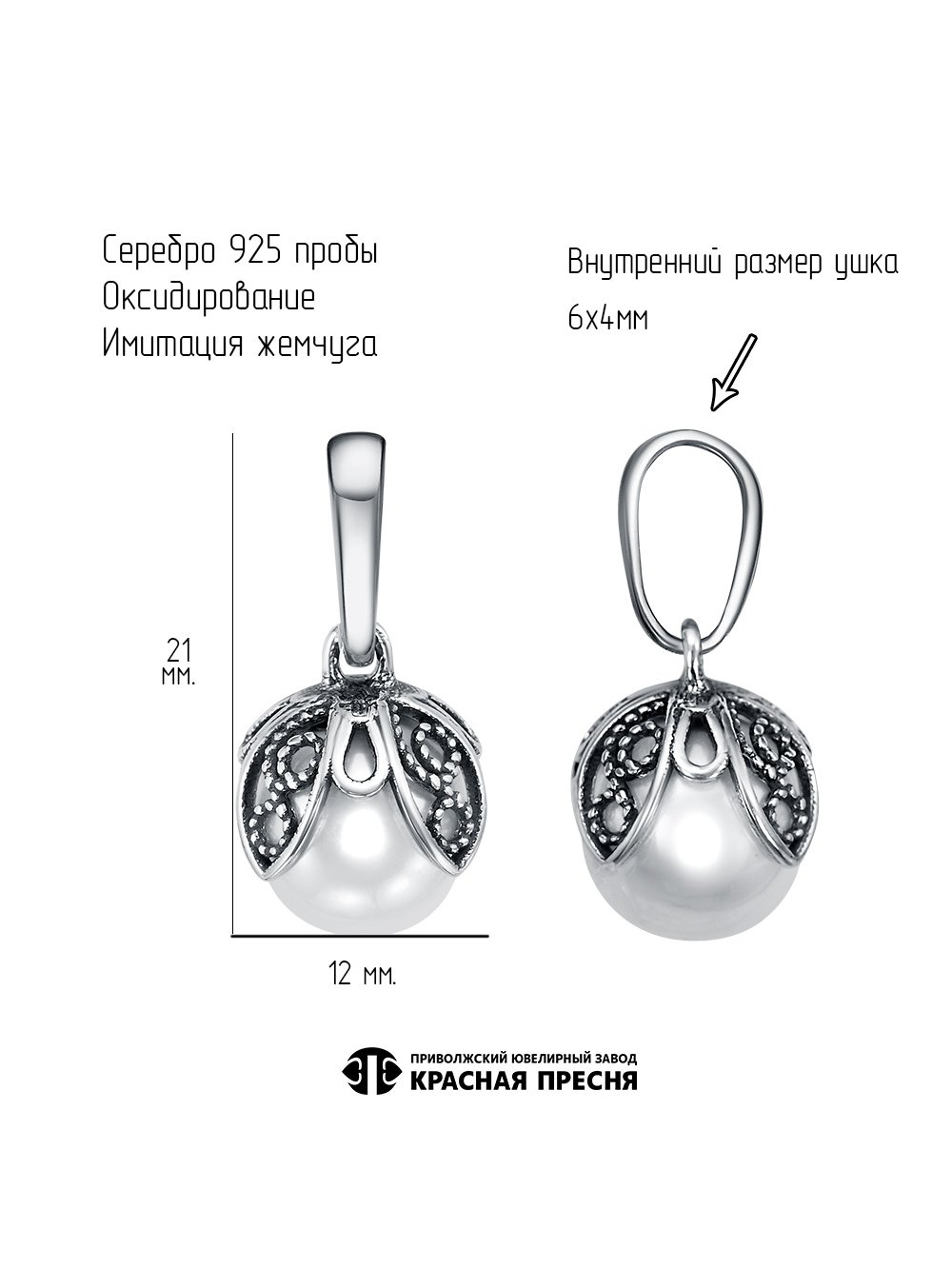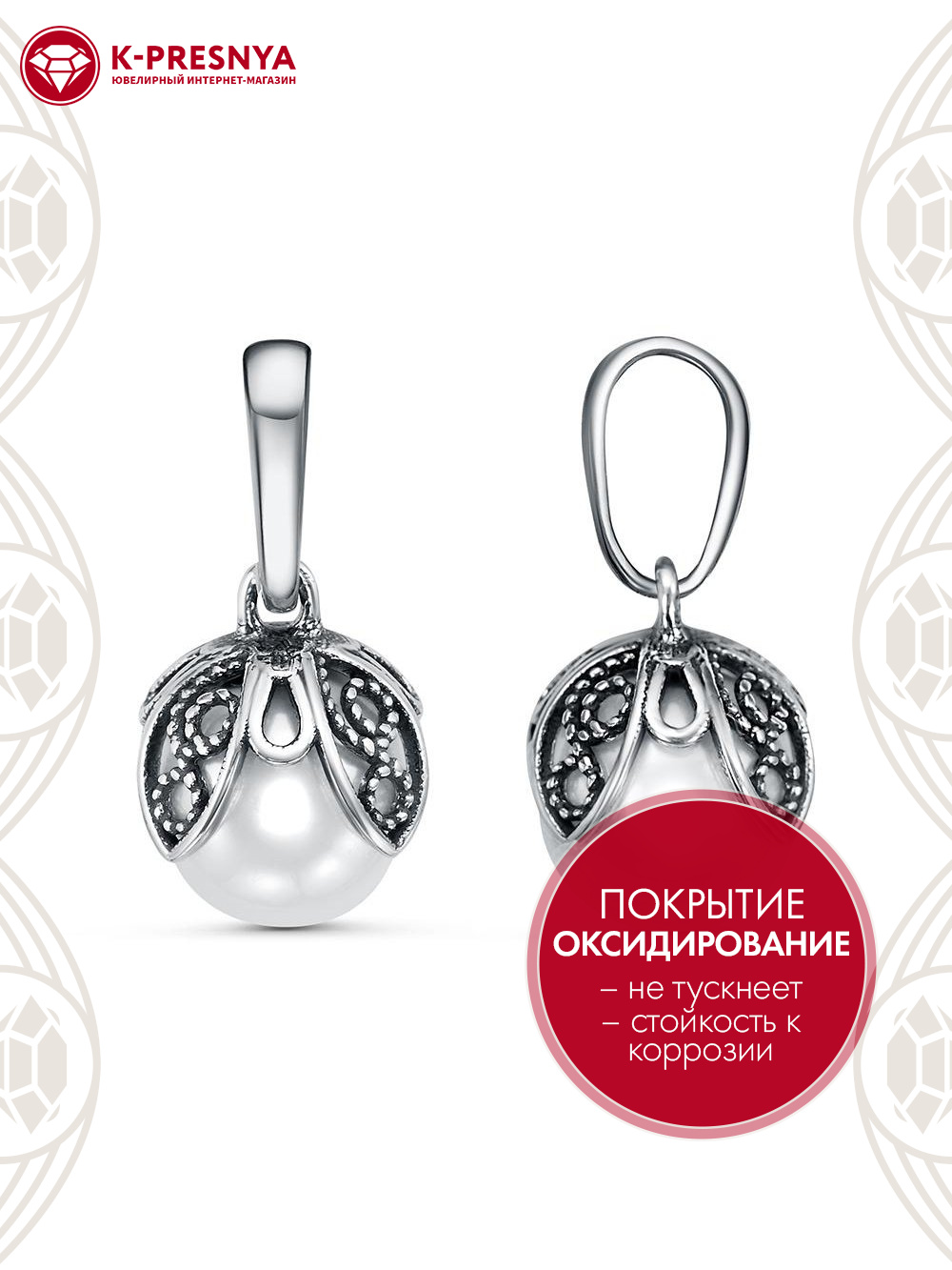 Подвеска серебро 925 пробы, покрытие - оксидирование, вставка - имитация жемчуга
