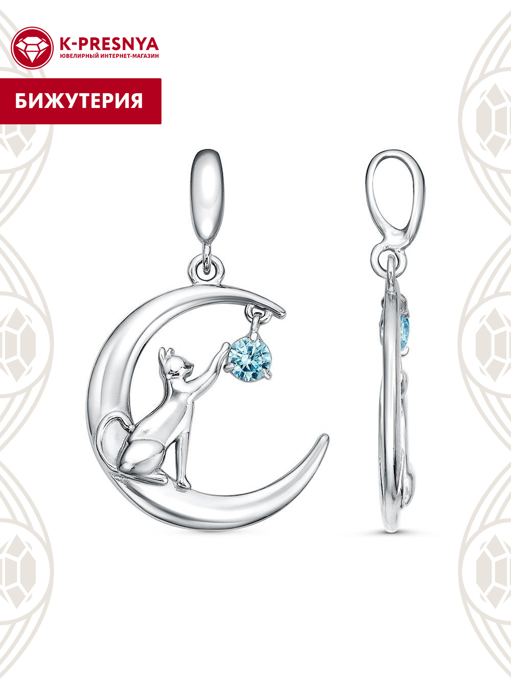 Подвеска бижутерия, покрытие - платинирование, вставка - фианит (недрагоценный камень)