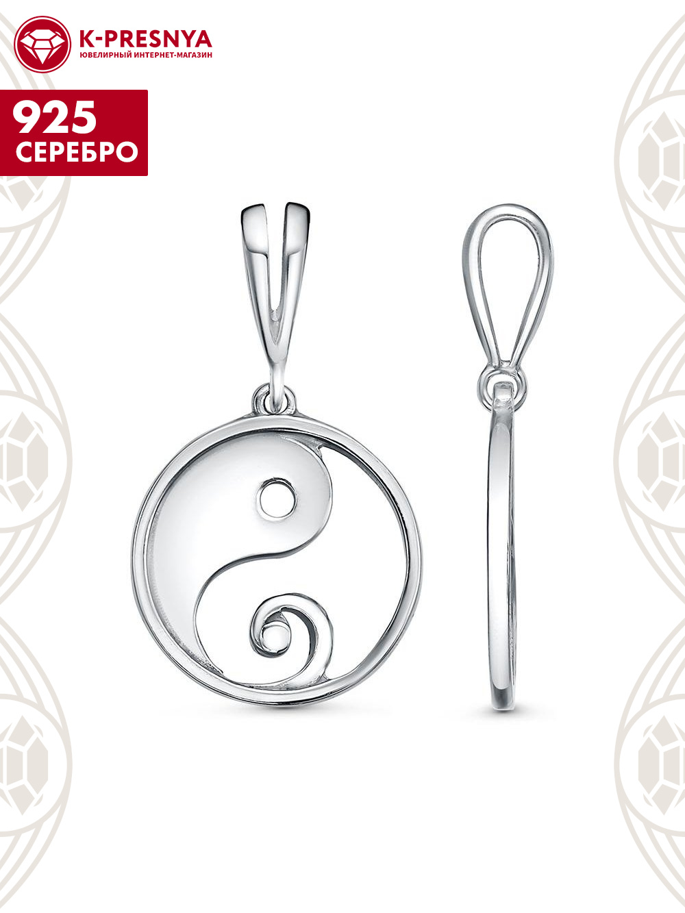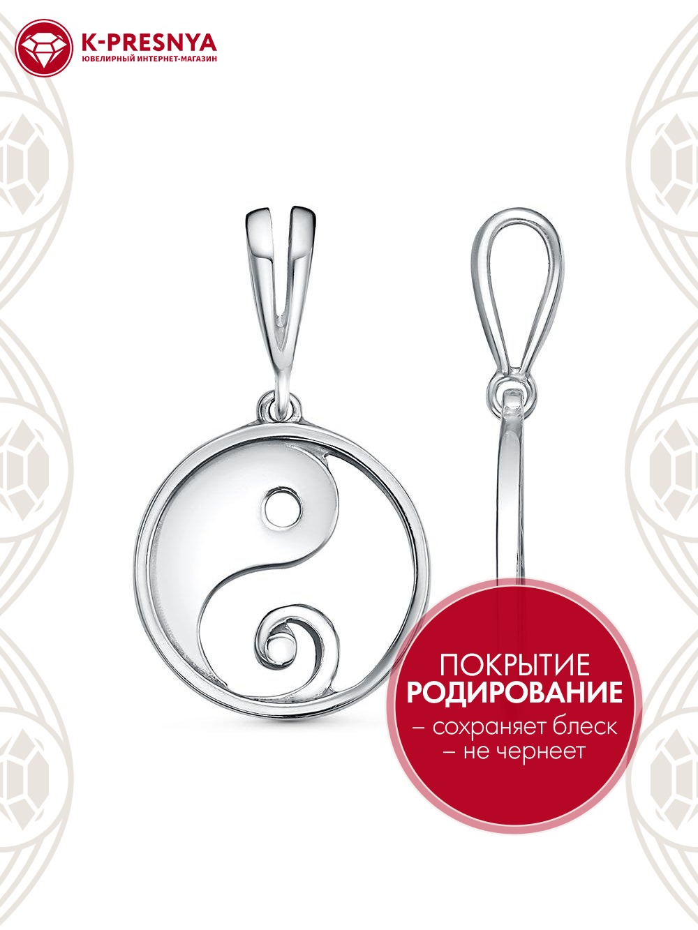 Подвеска серебро 925 пробы, покрытие - родирование, без вставок