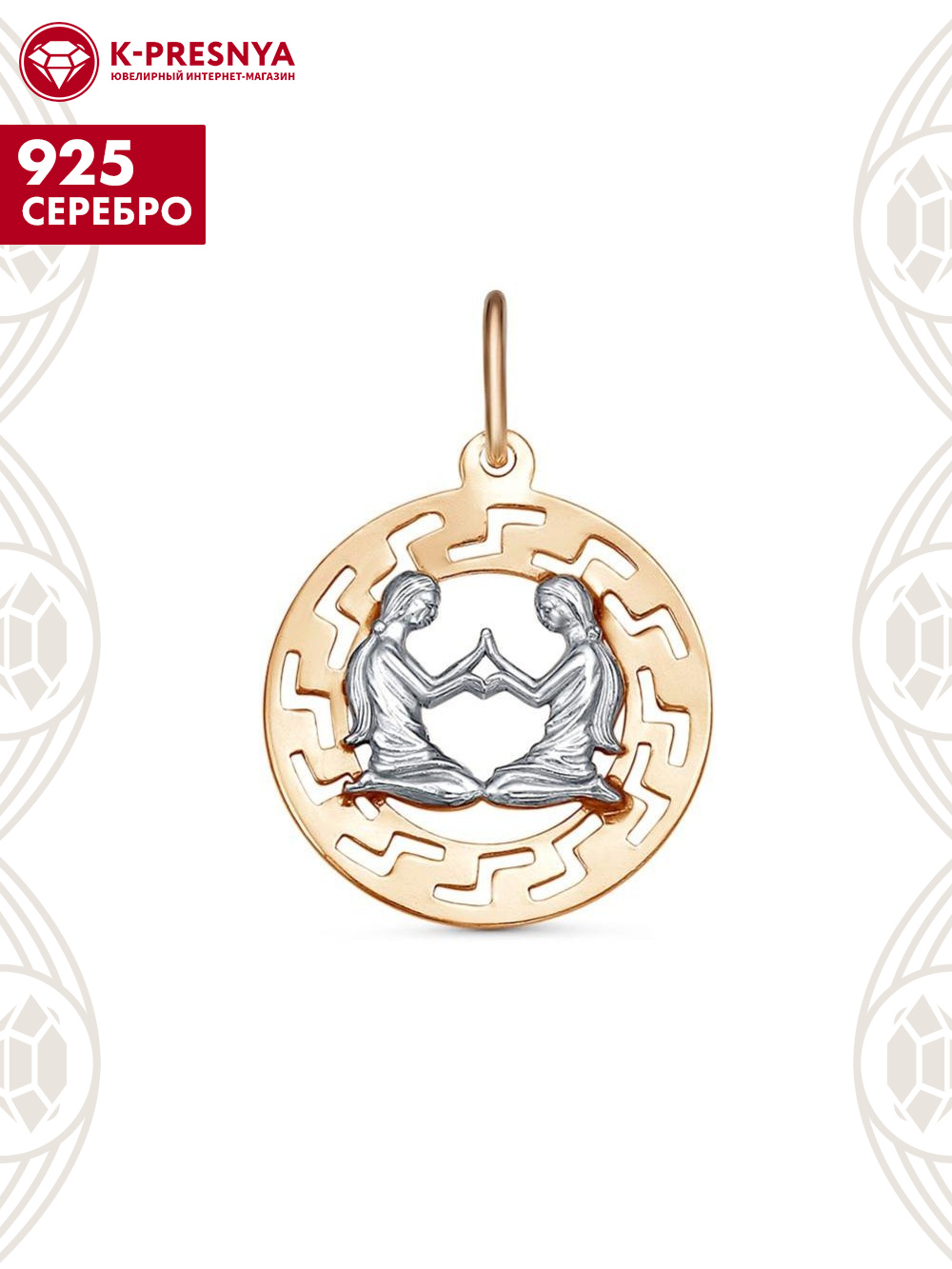 Подвеска "близнецы" серебро 925 пробы, покрытие - золочение, выборочное родирование, без вставок